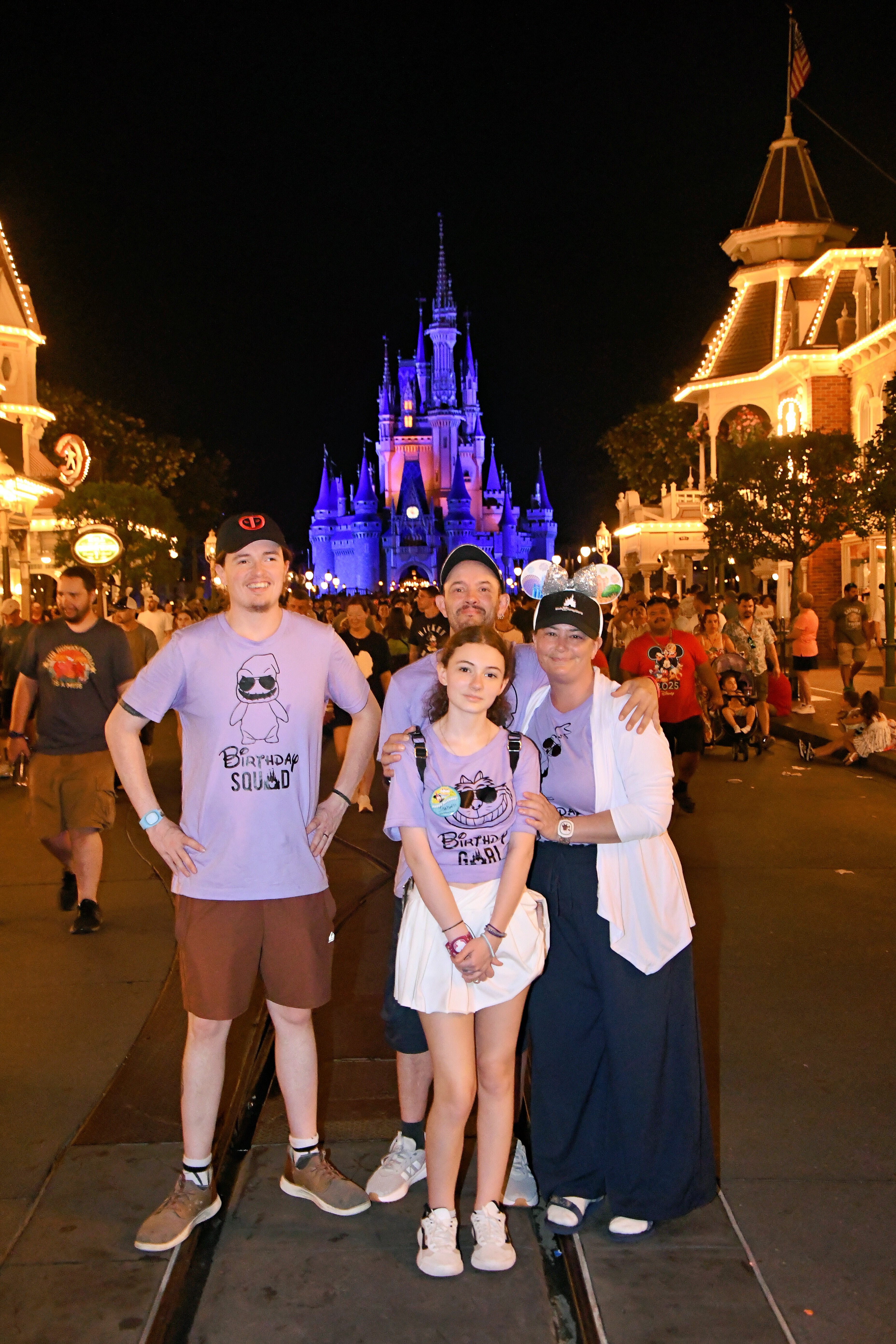 Back at the resort the boys took power naps while DD and I had a swim until the mid afternoon shower started. Pool water felt warm, rain water felt FREEZING! So we headed back to the room to get ready for MK. Tapped in about 3:45 and headed for TBA. Made it through with minimal water soakage then swung by Gaston’s Tavern for snack. DS and I split the Ham and Gruyère tart, DD and DS got cupcakes, I got a crème brûlée croissant (best thing I’ve eaten this week so far) and DBF put away the massive cinnamon all by himself lol. Then we rode UTS and Carousel. The kids stopped in to meet Tiana and Rapunzel quick before MAWTP. Then it was a trek back to Town Square for DD’s birthday dinner at Tony’s. Food was excellent, though it took forever to get seated. After dinner we headed into Tomorrowland for SM (not smart on a full stomach) and the kids took a spin on the speedway while DBF and I caught some fireworks. Our last ride was Tron with a LLSP. Really fun ride, though again, not smart to do on a full stomach. We hit a photopass on the way out and waited in the LOOONG line for a bus. We are pooped and very excited to sleep in tomorrow lol. Good night all!