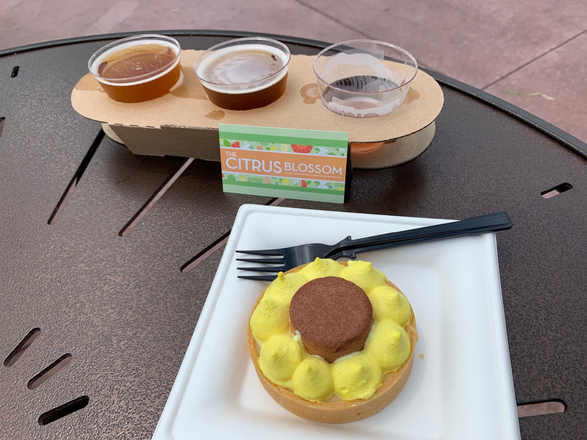 Grapefruit Tart (grapefruit curd, lychee jam, ginger mousse, and yuzu cream) and a beer flight from Citrus Blossom.