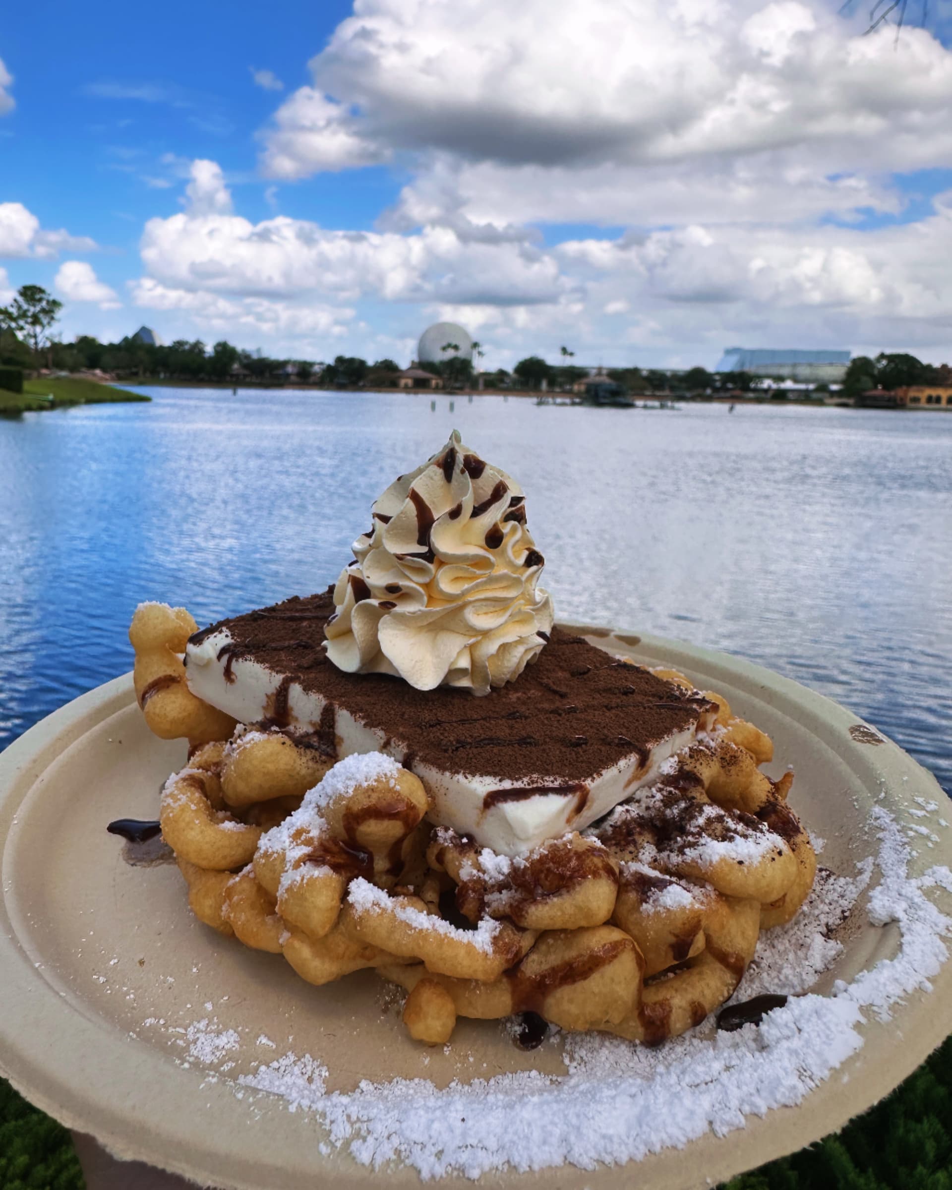 At the American Pavilion, we got the Tiramisù Funnel Cake with vanilla ice cream topped with chocolate rum sauce and cream cheese whipped cream and dusted with cocoa and espresso powder. This was probably my favorite dessert of the entire trip. I love fried foods and I love ice cream. Easy win.