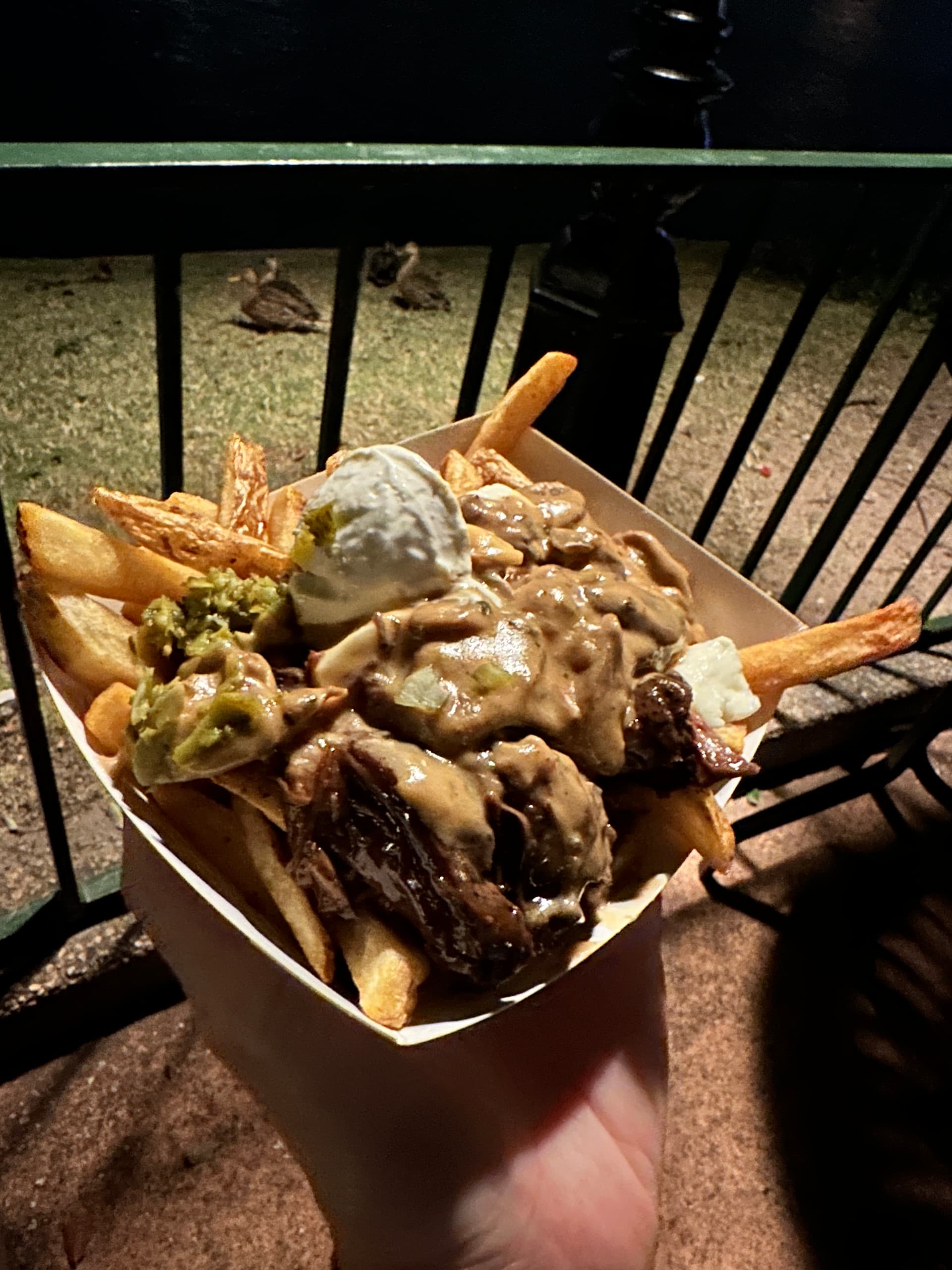 Maybe it was a hint of things to come that I could NOT get a flattering picture of it no matter where I went. This was Refreshment Port’s Braised Beef Poutine (French fries with braised beef, Boursin Garlic & Fine Herbs cheese sauce, cheese curds, and gherkin relish). First fail: the fries weren’t crispy! Second, I felt that the beef/sauce was way too salty.