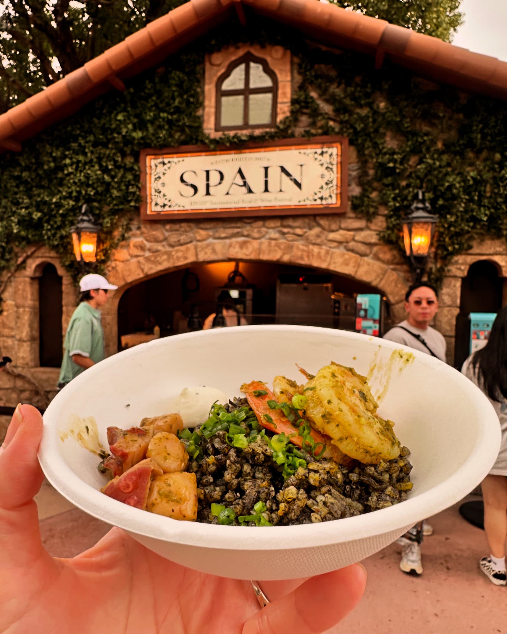 At the Spain booth, we shared the Paella Negra (Squid ink rice with shrimp, Bay scallops, and octopus served with garlic aïoli). This was quite good considering it’s counter service paella.