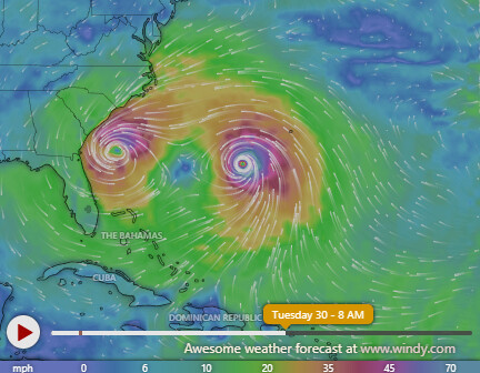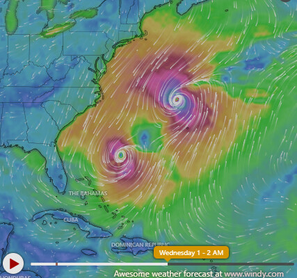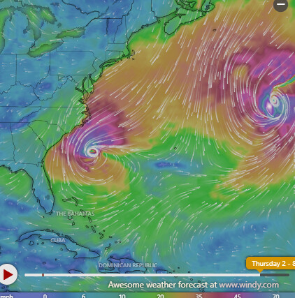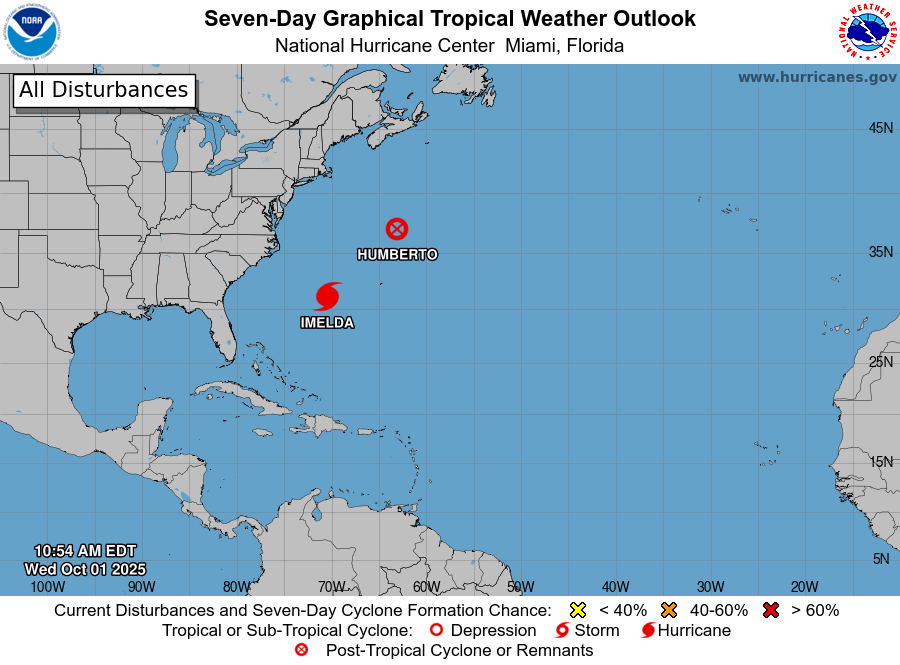I’m not at my desktop so it’s tricky to post the update images, but Humberto hit Cat 5 and Nine / Imelda looks more and more likely to head straight out to sea - and a little more quickly than previously anticipated.