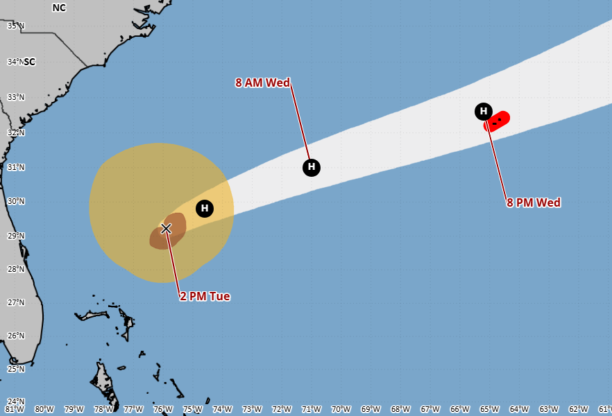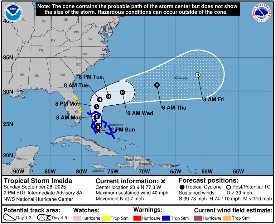 Imelda should be a Tropical Storm soon and will be one over the Bahamas - it will only become a hurricane as it approaches the SC coast, but it should turn away before reaching it.