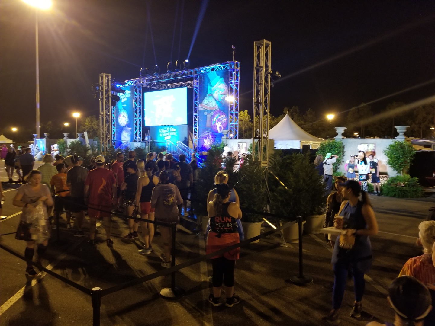 3:00AM Wake up, sneak out of room, change into running gear in the BW lobby restroom, bus to 10k start, arrived at 3:40, photo with Goofy at 3:44 and Mickey/Minnie at 4:04, got coffee, potty break, then hung out in corral until race started at 5:30, see full race report here. Some good advice: if you want character pictures before the race, try to get on the first bus there. When I arrived, there were only about 30-40 people in line, but within 10-15 minutes there were hordes (see photos 2 and 4 below).
