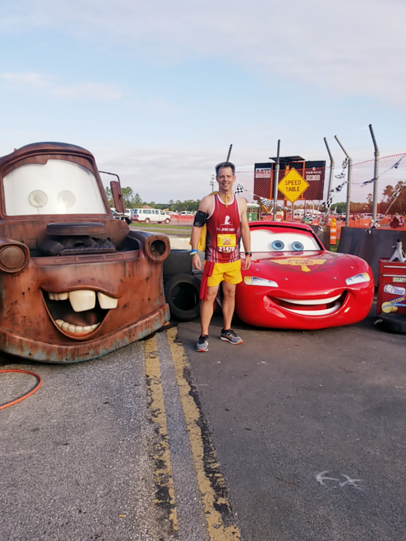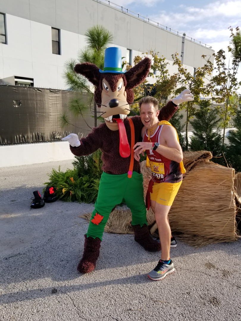 2:45AM Wake up, sneak out of room, change into running gear in the BW lobby restroom, bus to half marathon start, arrived at 3:15, photo with Mickey/Minnie at 3:44 (after 20min wait), got coffee, potty break, then hung out in corral until race started at 5:30, finished race at 8:15, see full race report here
