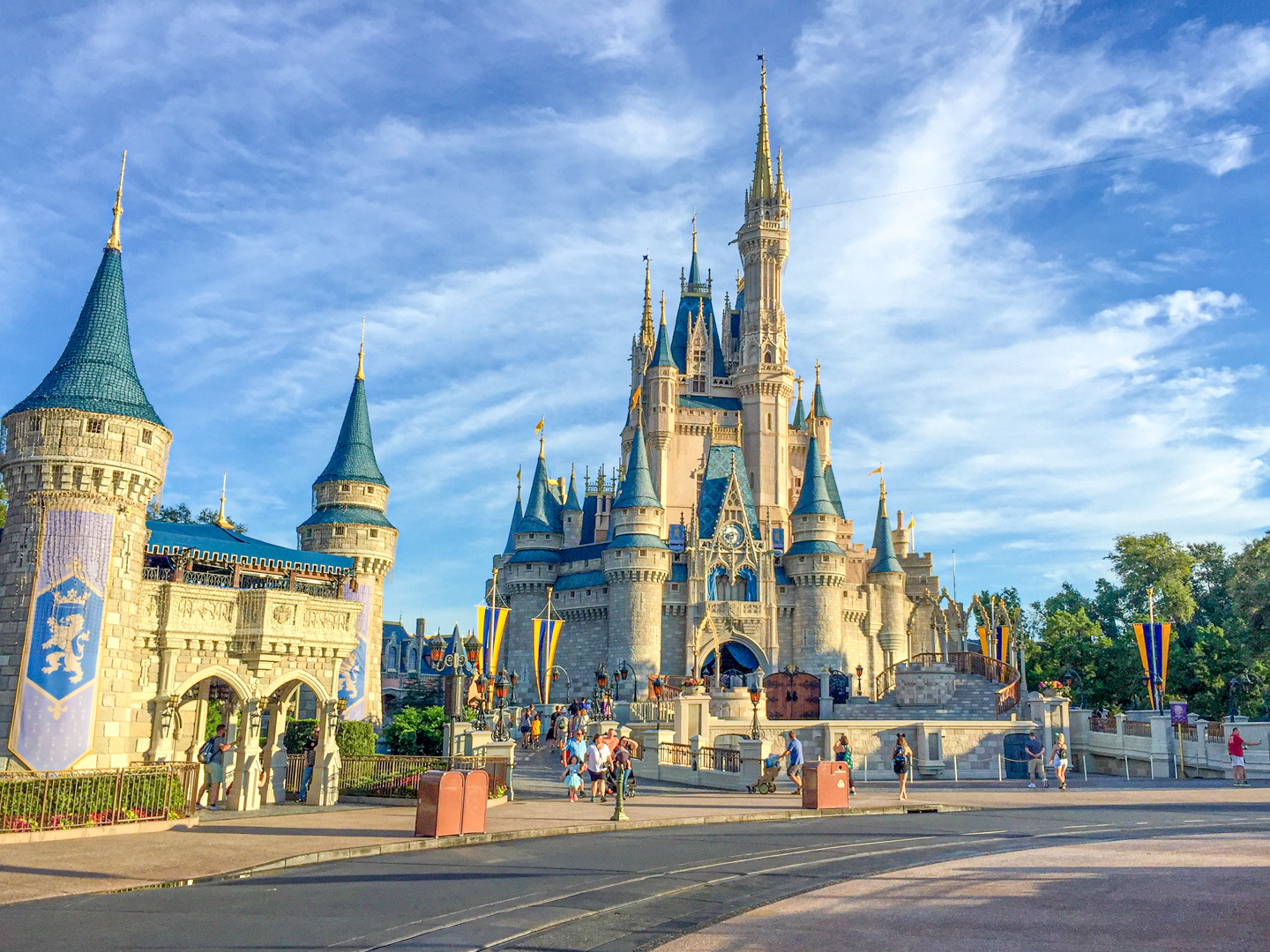 2:00PM Watched Festival of Fantasy parade. Big Magical Moment. We got the best spot. I’m not sure why people didn’t fill in this area, the furthest left when facing the castle, but when we arrived there was plenty of room for both strollers and for the adults to sit. It was an amazing view. The VIP package at Tony’s was worth every cent. I was a little disappointed that the characters didn’t interact with us, which I had heard they do for the VIP area. They waved a little bit, but they do that to everyone. Not a big deal though.