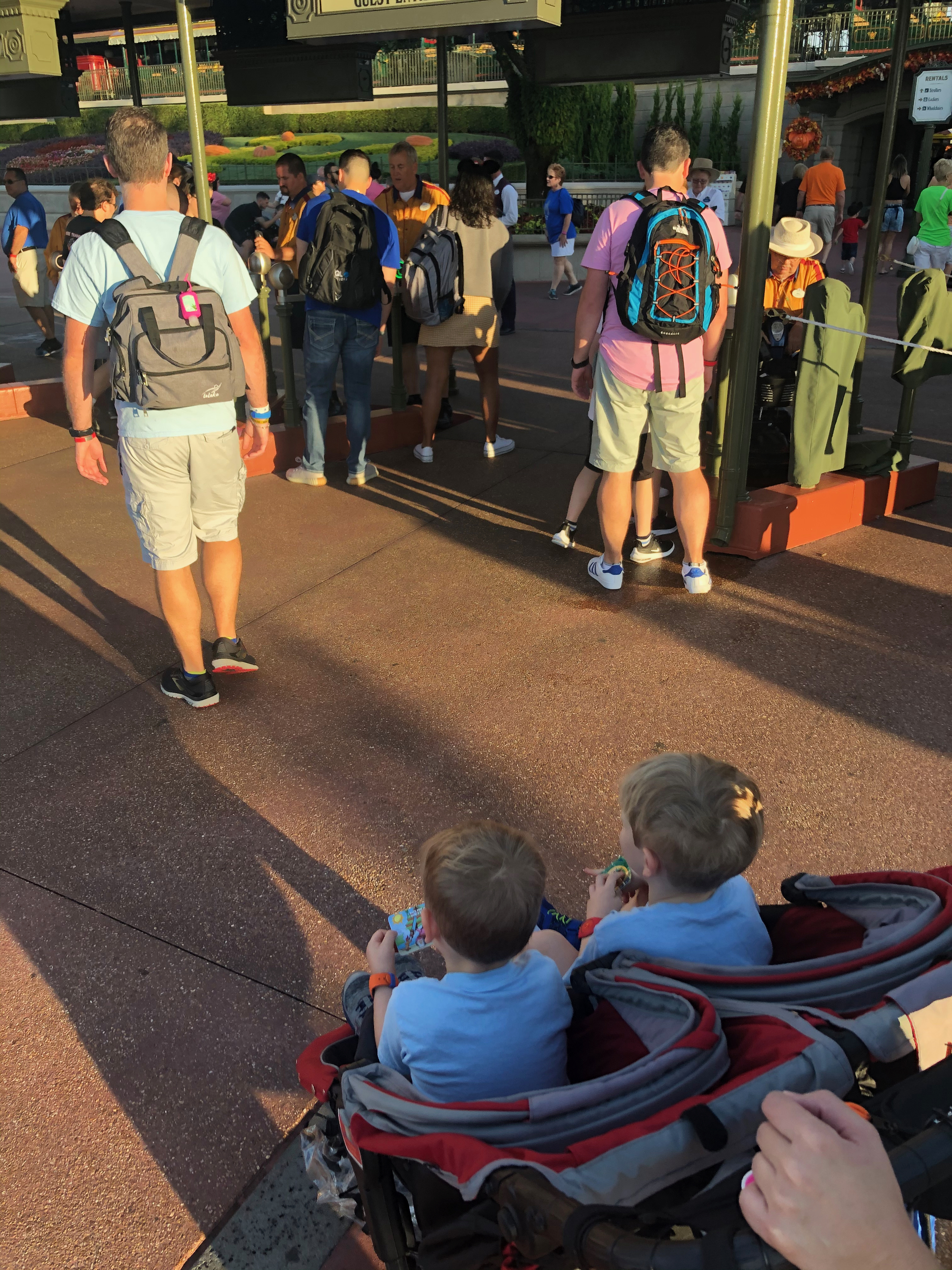 7:00AM Everyone slept in pretty late. The boys are normally up by 6 (sometimes 5:30), but the late night and the time change did them in. We hurried to get ready and boarded the bus to MK around 7:55, 30m later than I had planned. I had wanted to watch Let the Magic Begin at park opening ( TP adjustment #5 ). We saw the very end of it 2 days later, but at that point I didn’t care as we were sort of “Mickey”-ed out already and just wanted to get on the rides before the crowds showed up.