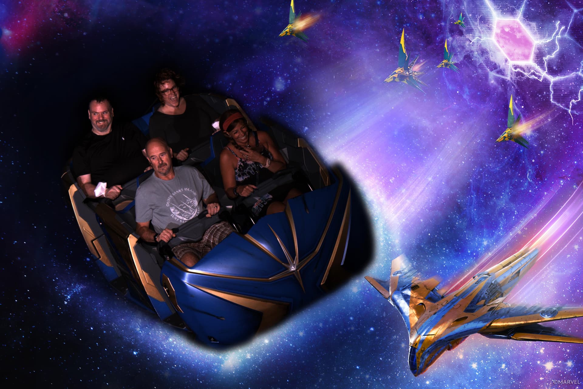 Sounds like another fabulous day. It’s really hard to beat dinner at Cali Grill, especially with an amazing sunset view like you had. Love the GotG ride photo. Front row is having a blast, back row is just trying to hold on until it’s over.