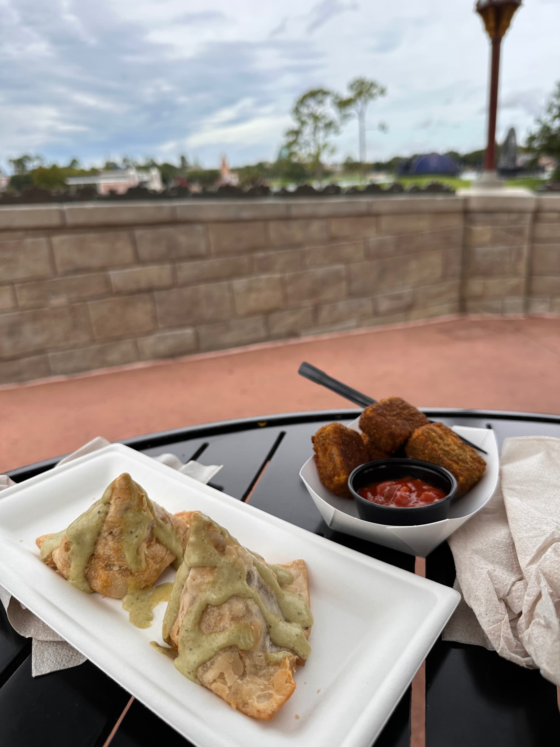 After that, we wandered back to Pandora for a real breakfast: the sausage egg biscuit sandwich, the French toast sticks, and two Pongu Lamia. It was very tasty, and fueled us up for exploring Pandora.
