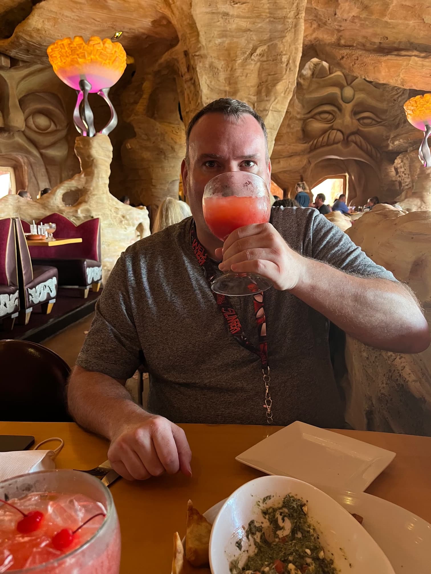 All this is to say, we went into Islands of Adventure just to walk through it, not really go on any rides or anything, just take it in. L’s fandom is Harry Potter, so she was excited to see that and get a preview of what’s to come. We did end up going through Poseidon’s Fury, an experience that I really enjoy, for all it’s cheese. L’s comment: “well, that was just delightfully campy.”