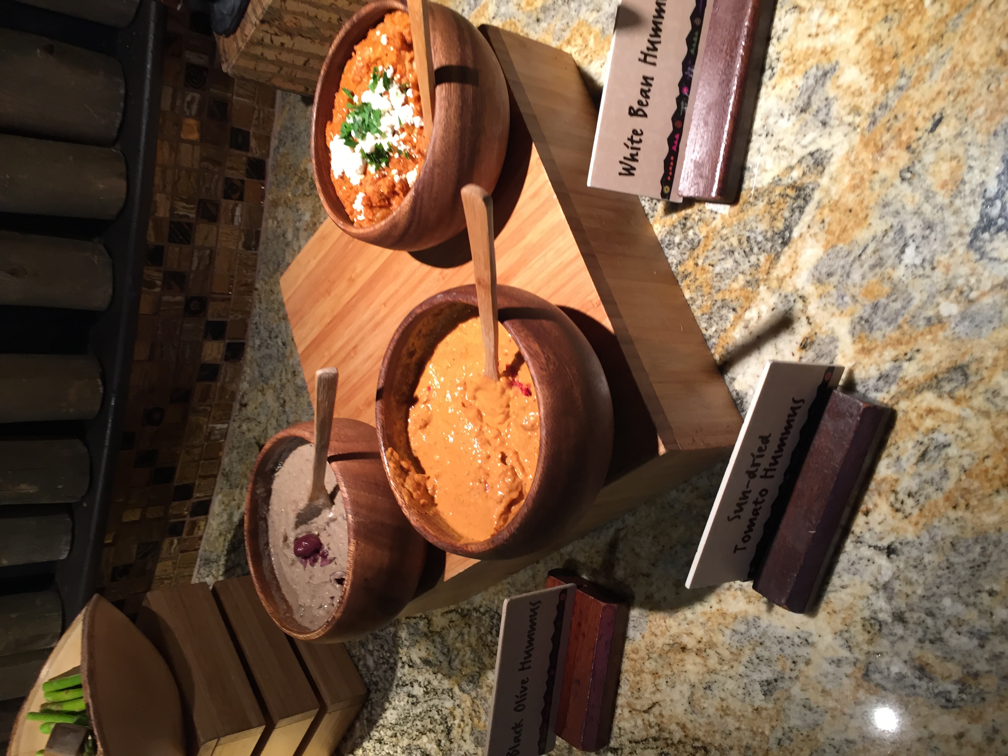 Maybe if you hold a phone sideways you can see the photos? These pictures are from February. There was a chef in the lounge every night preparing two hot choices. The food was very good. I love Jiko and Boma and the chef offerings were items you would find in those restaurants.