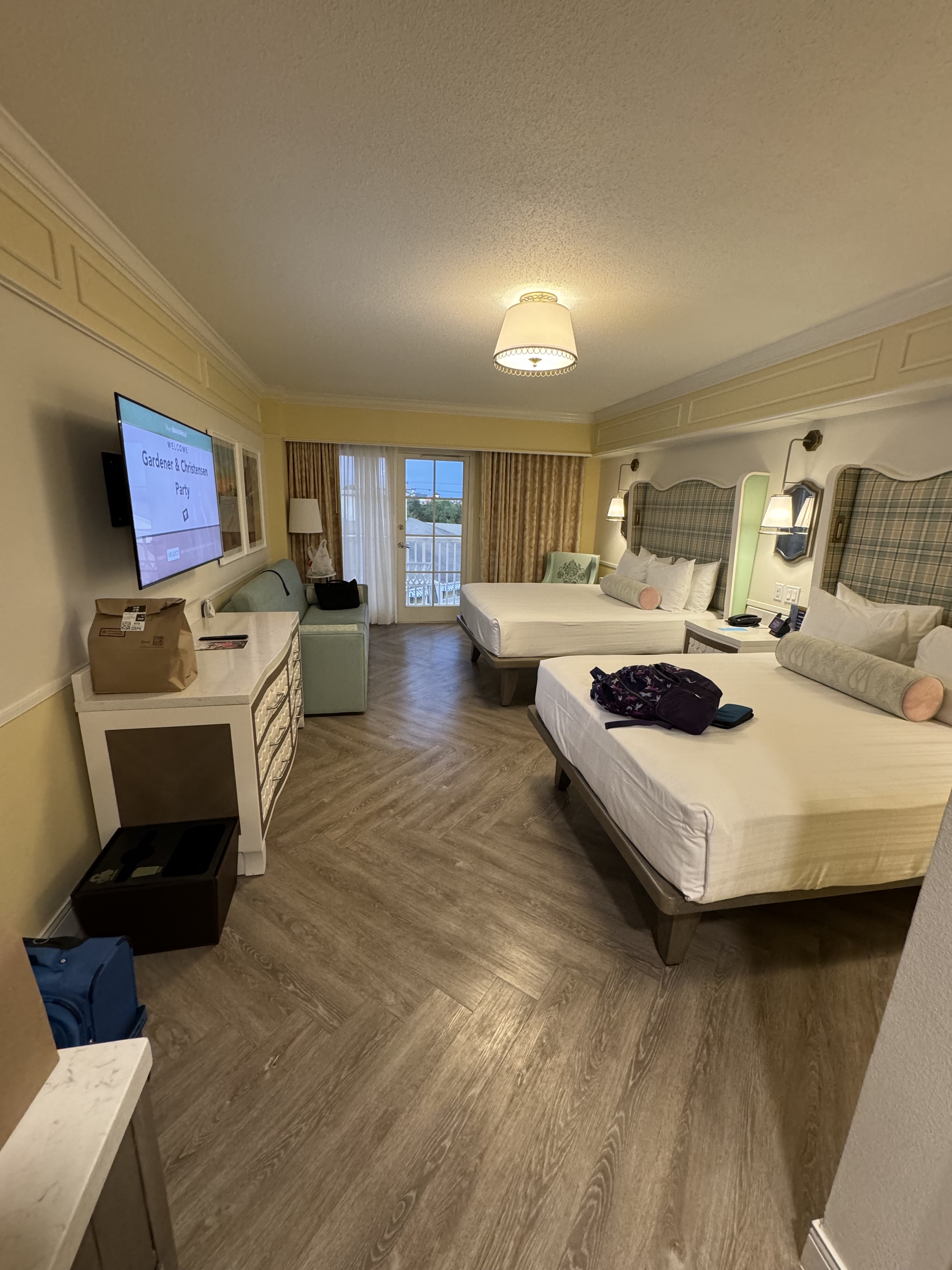 Overall I was fairly uninspired in the Boardwalk views and just wanted a day bed as a definite. When we checked in I needed to stop by the front desk as we expected to have 4 adults in the room and only had 3, so I wanted that money back up front. At that point they moved us to a better room as we were supposed to be first floor (1353 I think) by the quiet pool. In the end I much preferred our new room over the original assignment thanks to the boardwalk access and the laundry room…