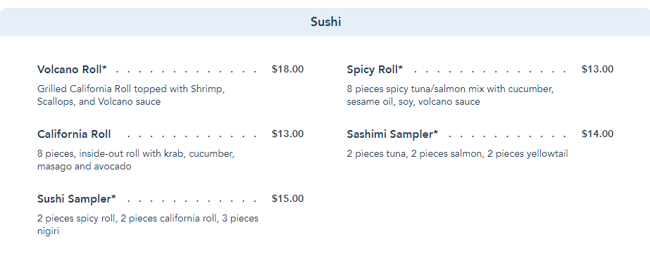 Both! Plus the drinks were really fun as well. It’s a place that DH, DS12 and I all request, both in WDW and DLR. Top 3 favorite sushi ever, not just on properties. That being said, it’s a personal favorite for us, but tastes vary.