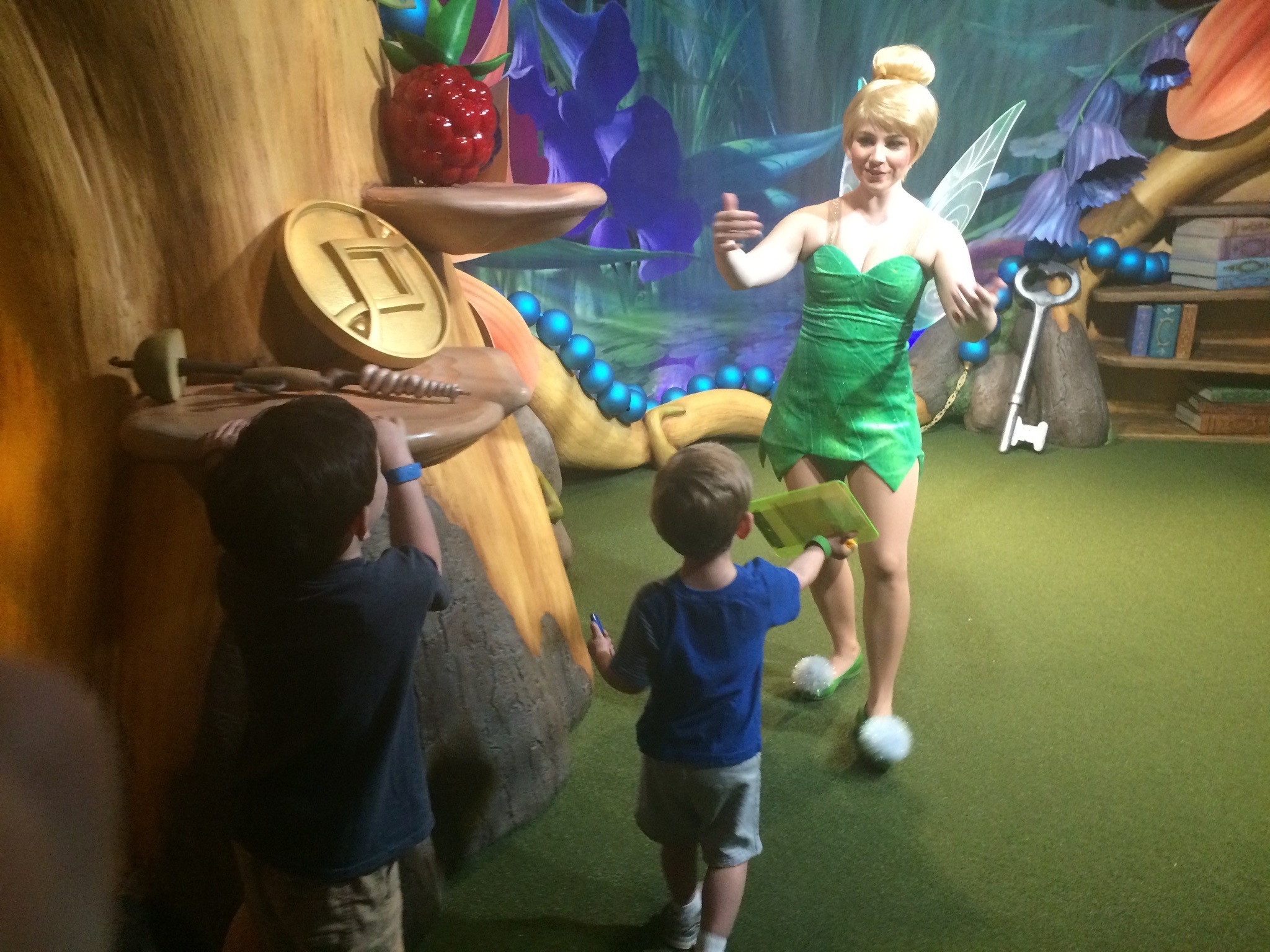 My DS5 was always scared of characters before our Spring Break trip this year. The first thing we did was meet talking Mickey when we got to DW. I don’t know if the fact that Mickey could interact with him helped or what but he wasn’t scared or apprehensive the rest of the trip with any of the characters (although he did think that the TST Mickey was the only “real” Mickey the rest of the trip). Other than a character breakfast he only wanted to meet Buzz, Woody and Baymax enough to wait for an autograph though (over an hour wait for Baymax!).
