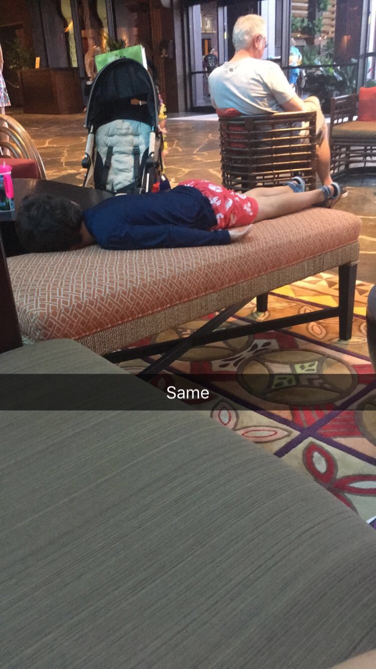 The idea of taking a break at Poly is a good idea! Lots of nice couches to nap on. My sister took a pretty funny snapchat when we were there waiting for dinner. I will share in a second. Another good idea is maybe have a nice long TS lunch around 1. Gets you out of the heat and the crowds.
