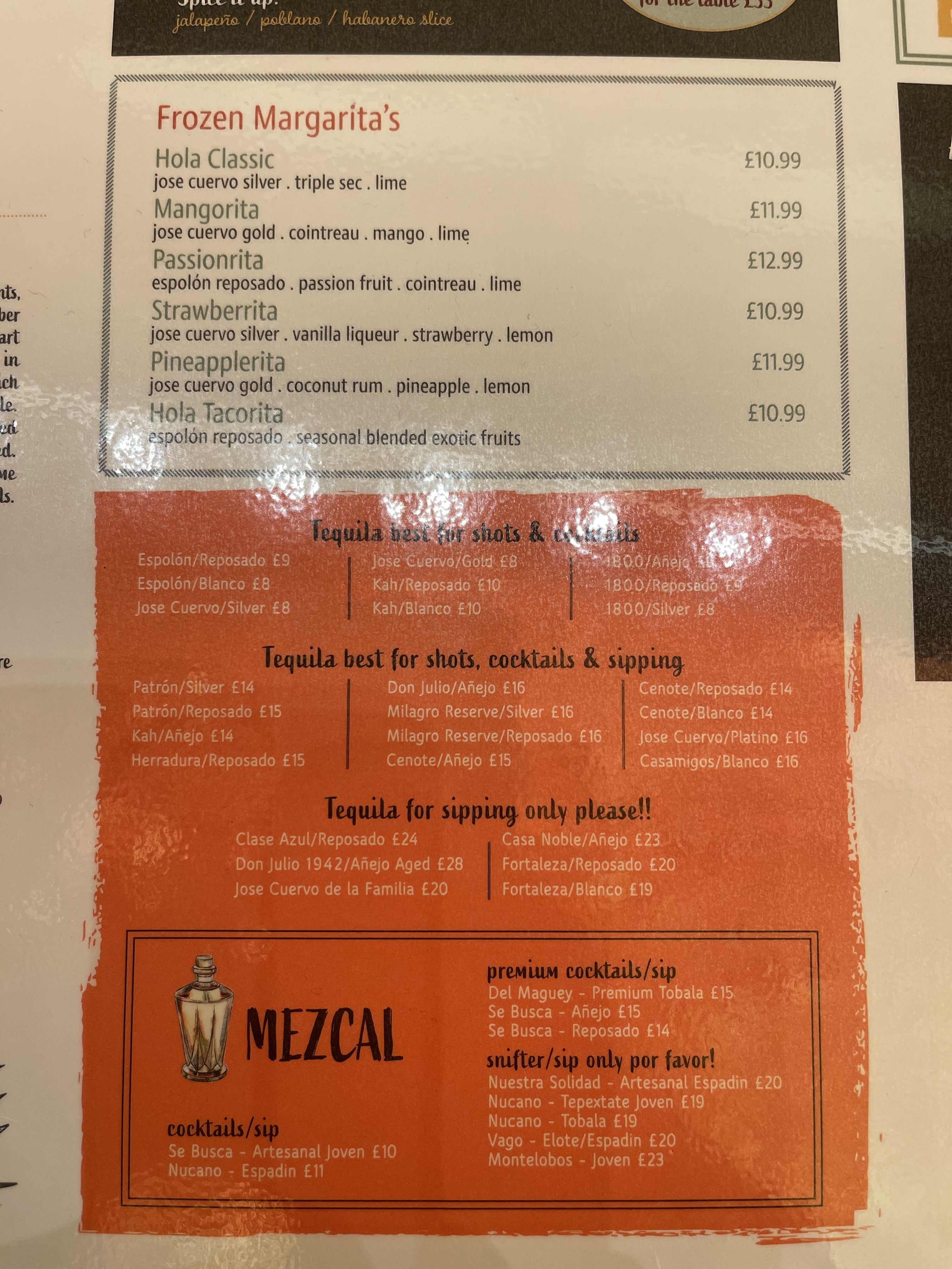 I won’t be able to help you with the tequilas (they all take like paint stripper to me), but I’m very fond of Mexican food, so here’s what I would order…