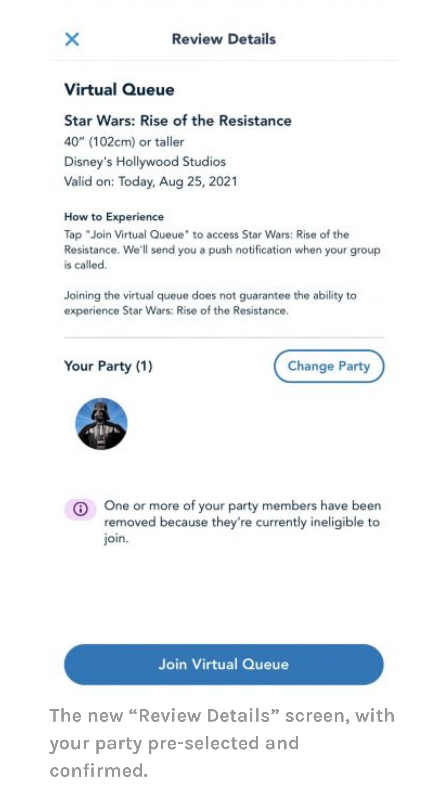 This functionality is already present in the app. Itâs just waiting on Disneyâs servers to start sending the right messages to activate it. Hereâs a preview of how it looks: