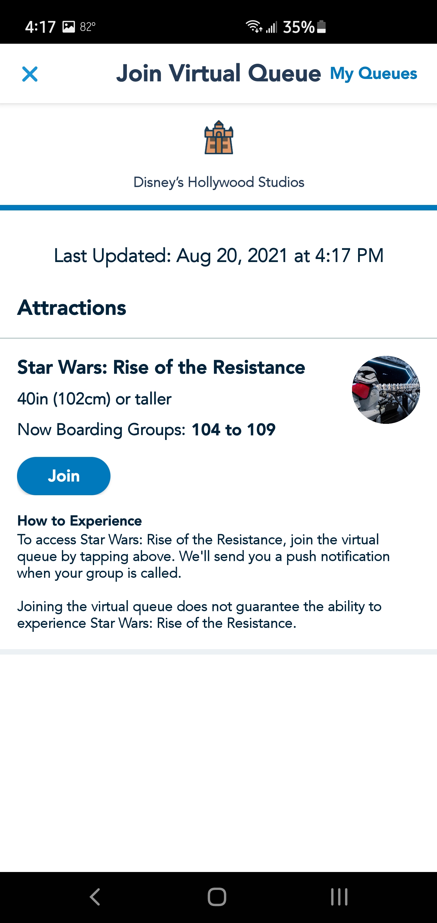 Guests with park hoppers were able to hop to Hollywood Studios at any time and get a Boarding Group.