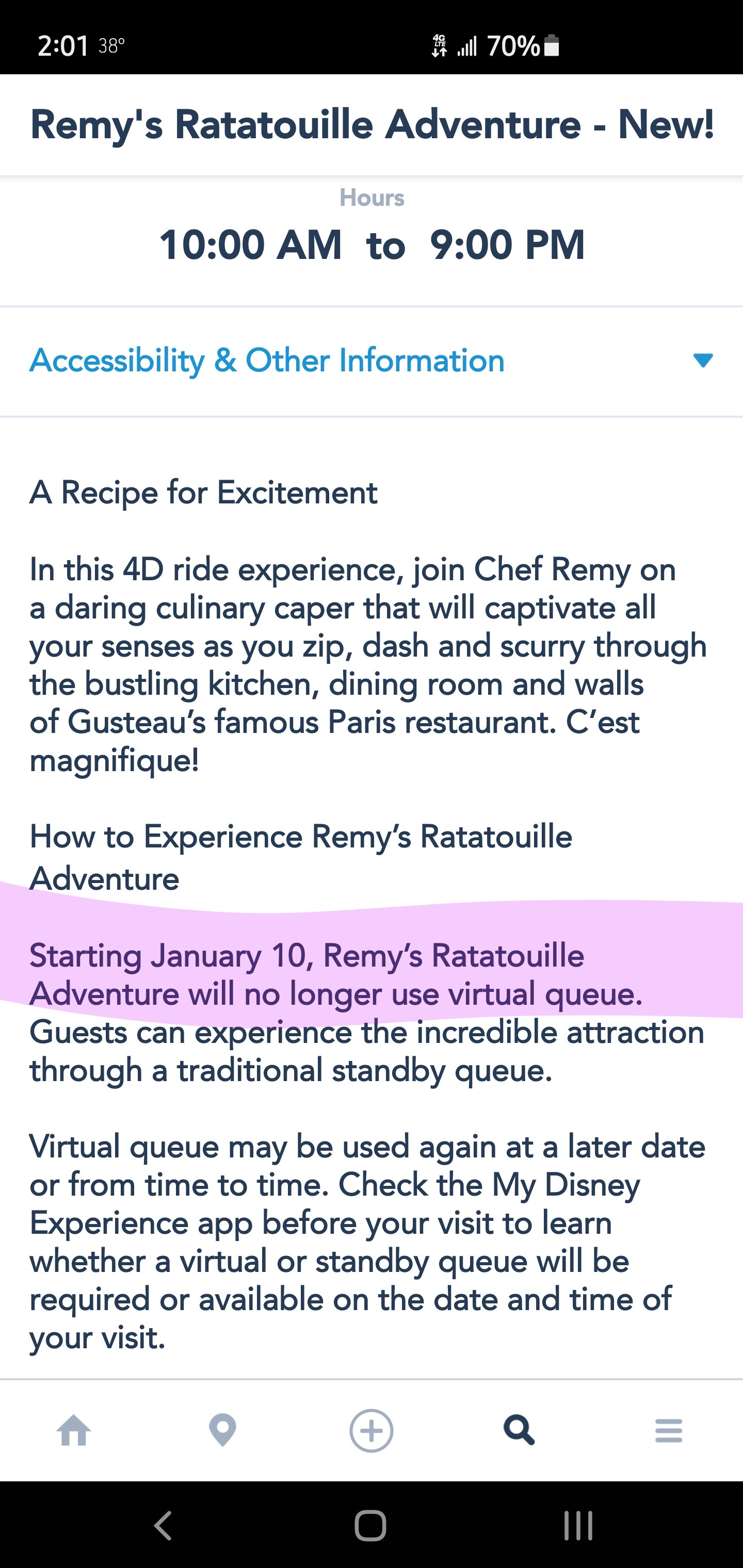 No Virtual Queue for Remy starting next week, will change to Standby Queue. I would guess we may not see any VQ usage at WDW until new attractions open.