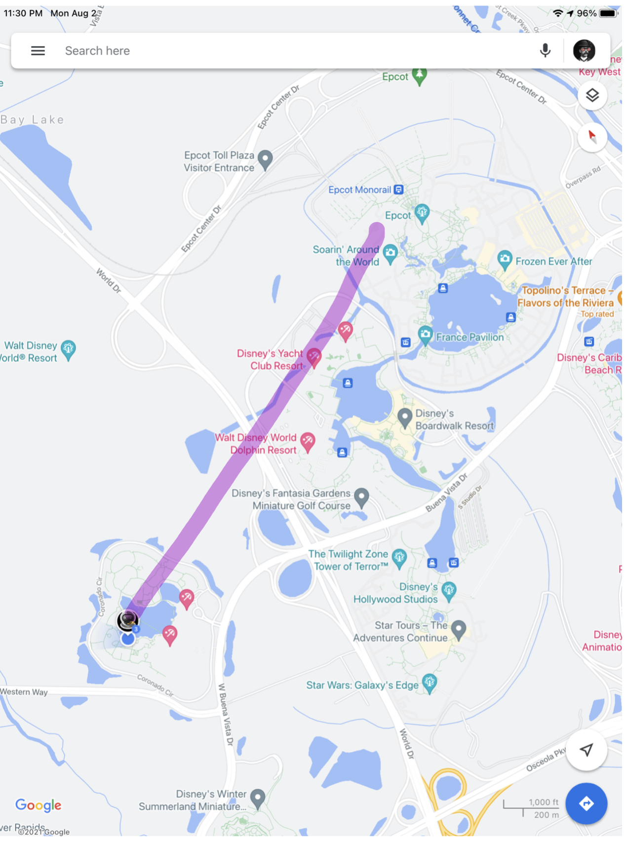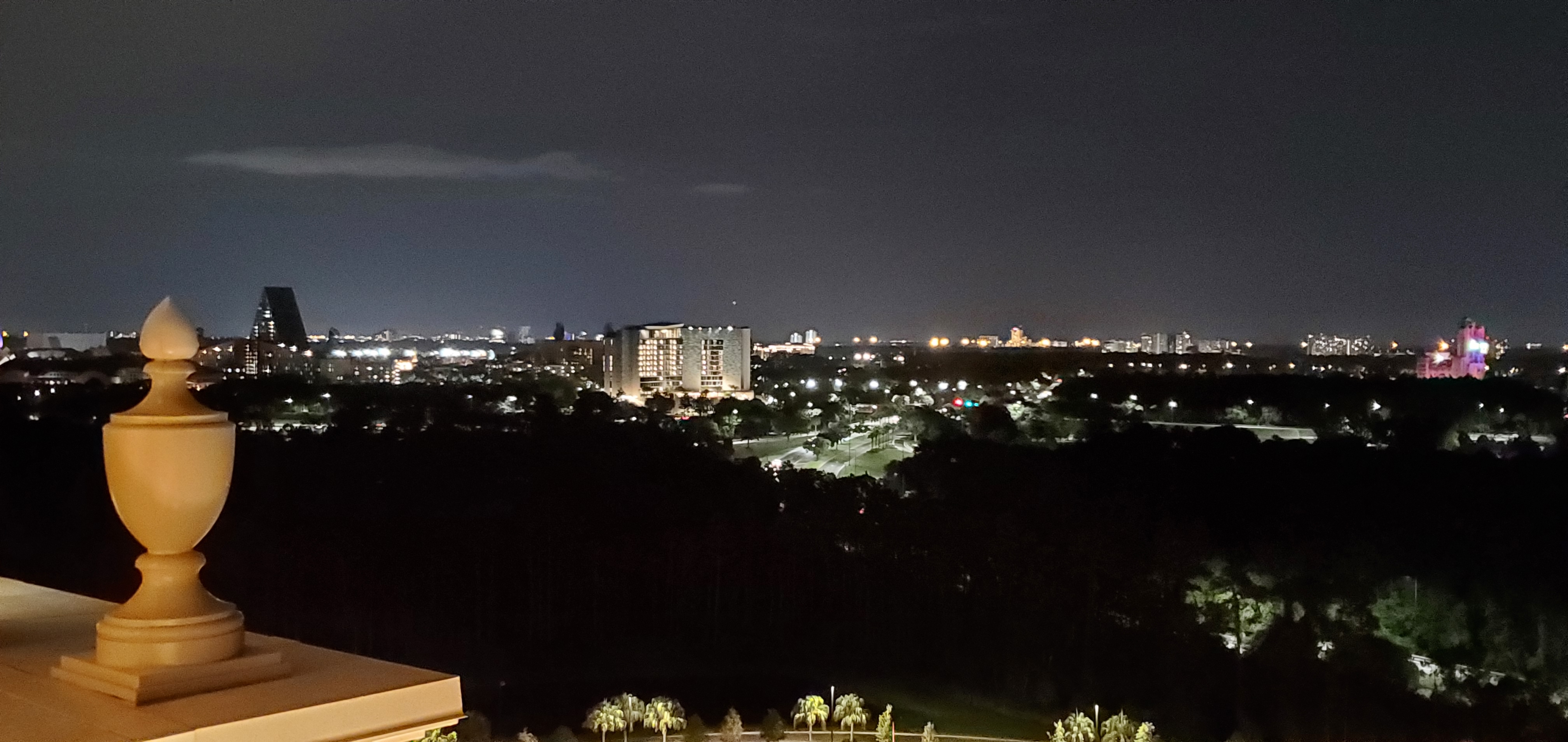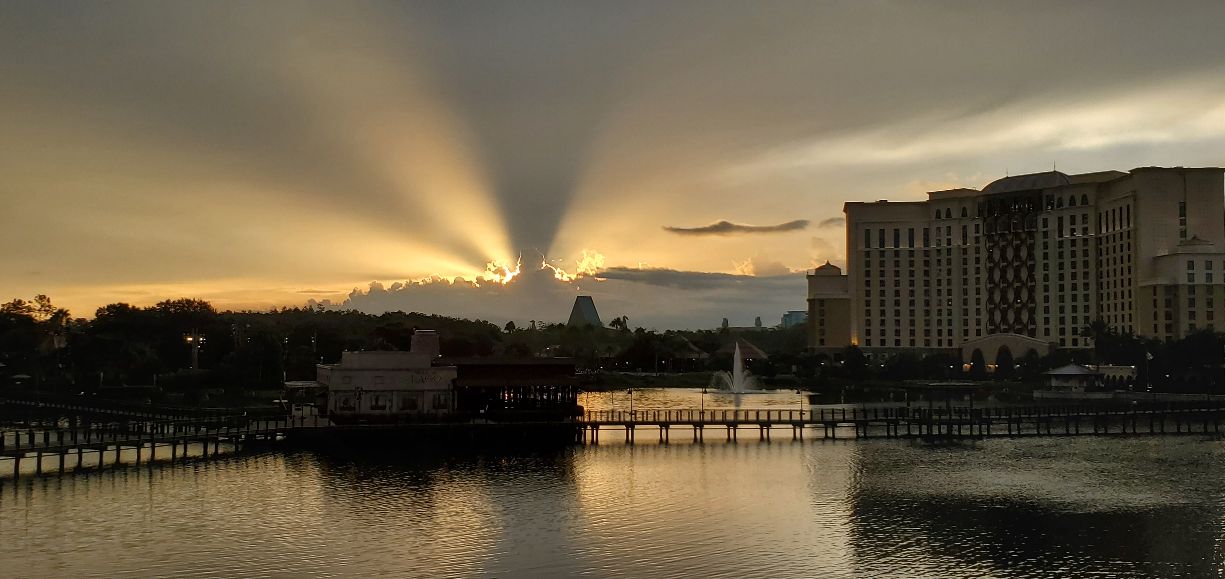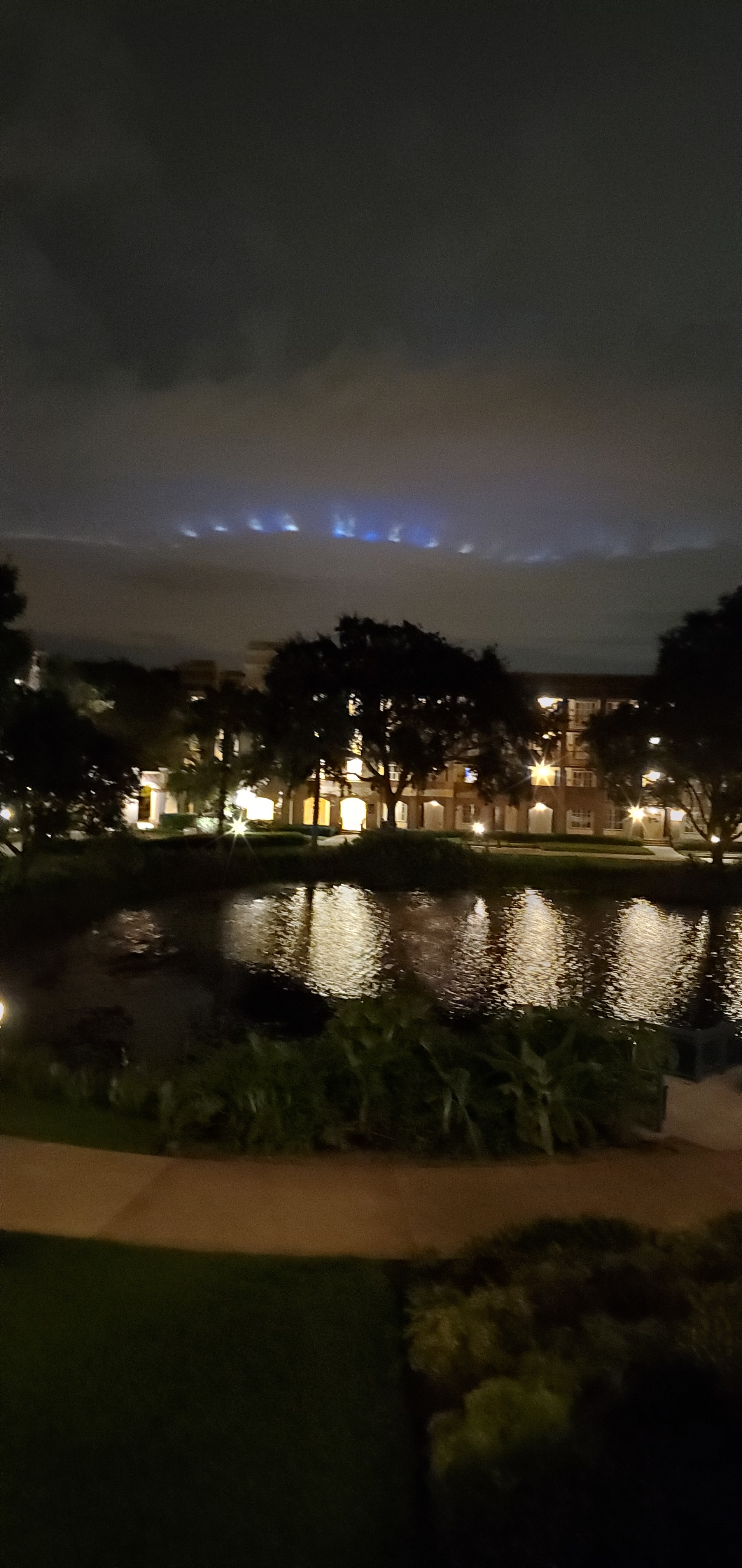 Oh, forgot: we saw this in the sky on way back from pool. Is that might bouncing off of Spaceship Earth onto clouds?