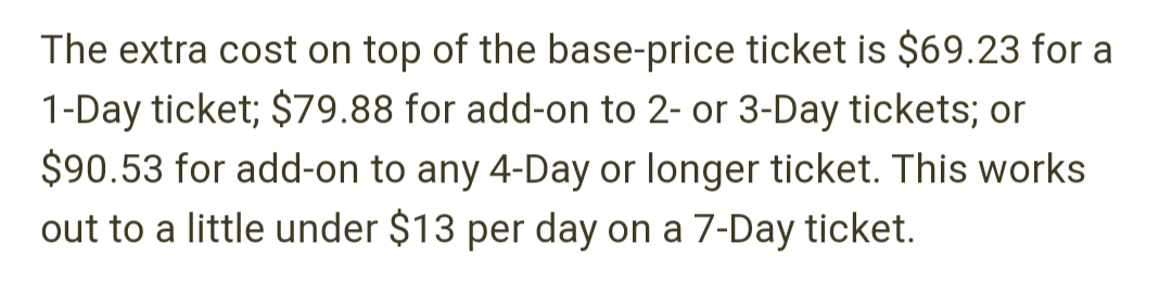 You have to be careful, because SOME CMs have done the upgrades and charge the per day average price instead of the difference in price between the 4 and 5 day tickets. When they do it that way, it ultimately charges you way too much. Instead, you should already have looked up the price difference between the 4 and 5 day and make sure they charge you accordingly.