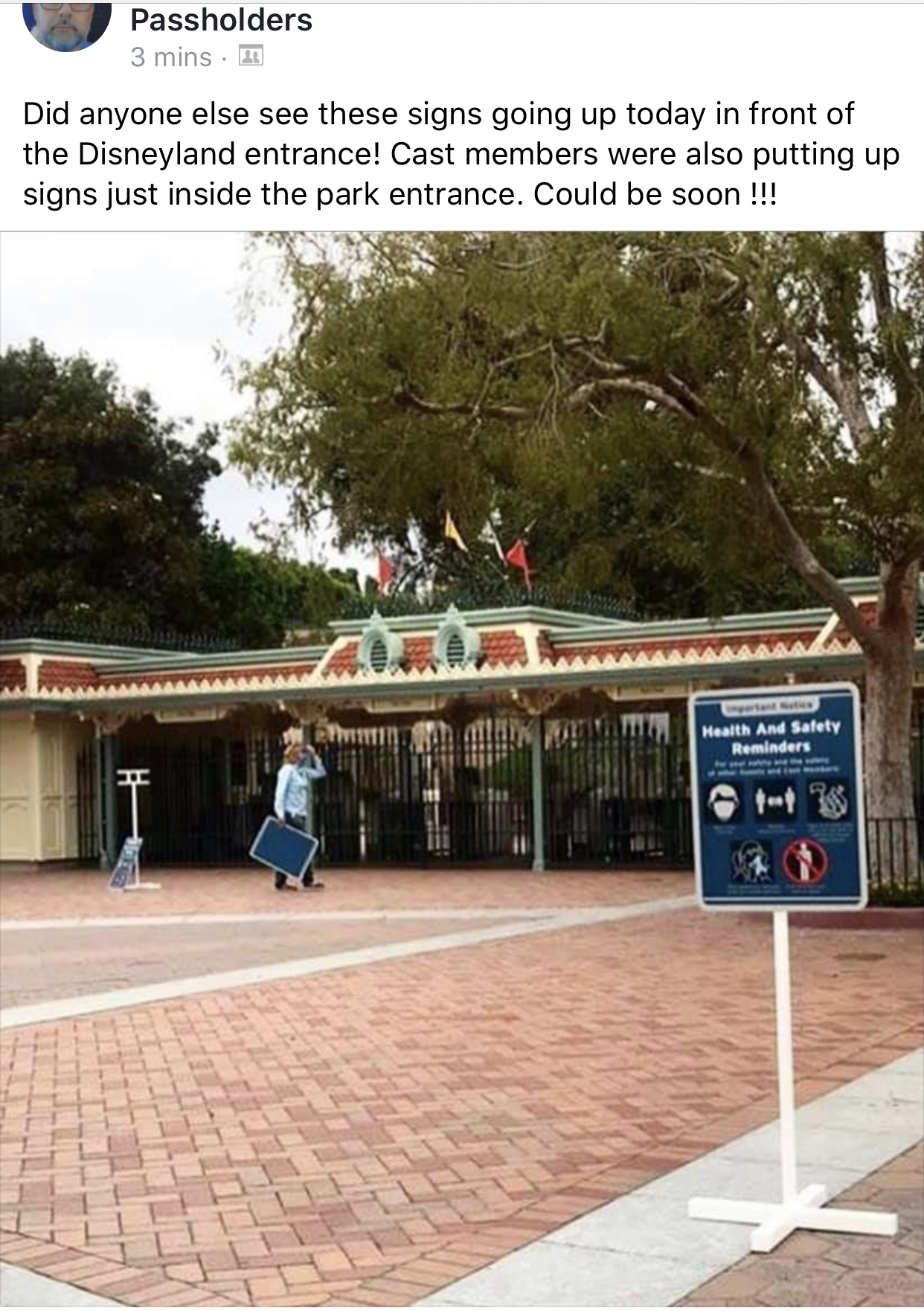 However, he was out at DLR last week and shot this video. You can see DLR putting out elements like comfort floor mats for CMs, hand sanitizer dispensers and more in prep for reopening.