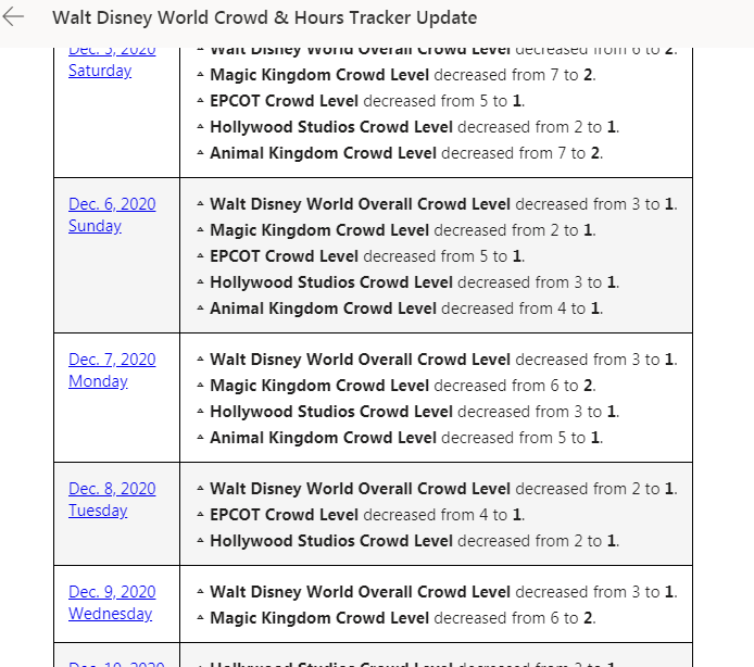 I got my e-mail notification about CLs a few moments ago for a TP I made for this December. The numbers all went down to CL1 across every park for every day. However, I still think this such a crazy year that all of these CLs could just be placeholders until there is more data.