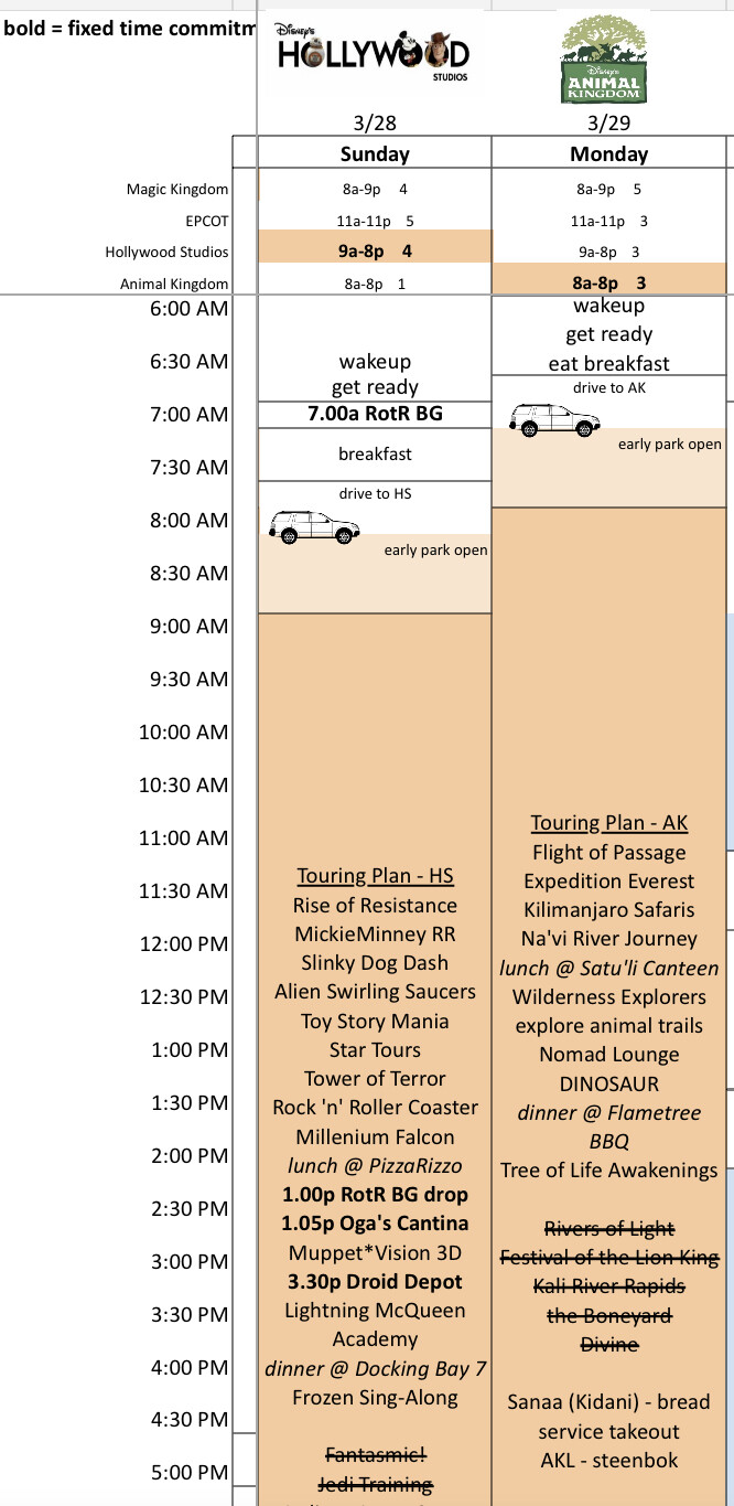 This makes me feel like I should make visual plans similar to this with all info in one place (attractions/times in parks/ADRs). I have a spreadsheet with details for me and rough touring plans that include what we hope to do each day. If I want visual itineraries, countdown is 3 so Iād better get on it! Ahhhhhh. @melcort10 , have any free time today to make some for another liner? ![]()