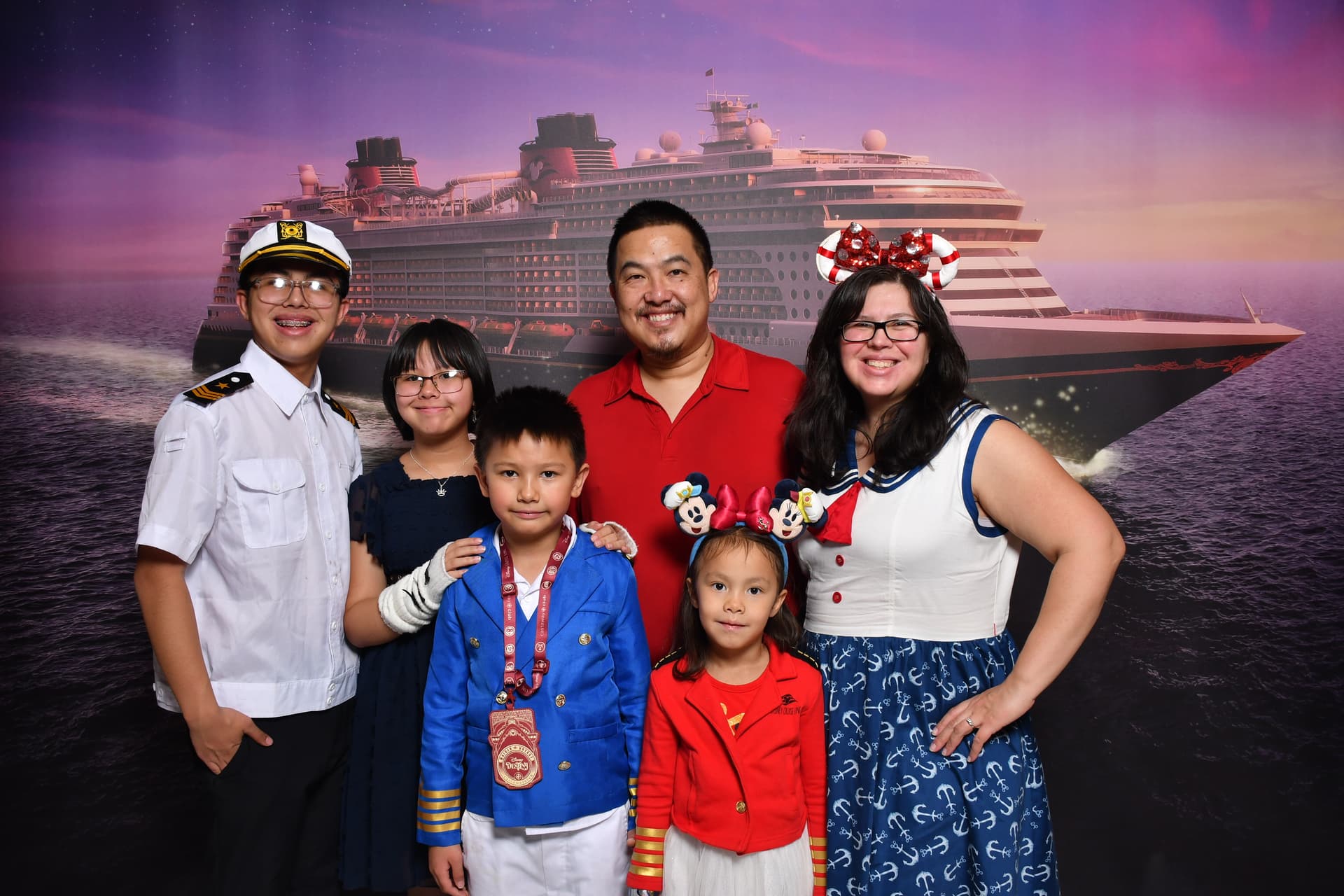 In Port Everglades they don’t let you enter the embarkation photo lines until your boarding group is called so we had one last line to get our embarkation shots that I had specifically wanted to be dressed up for.