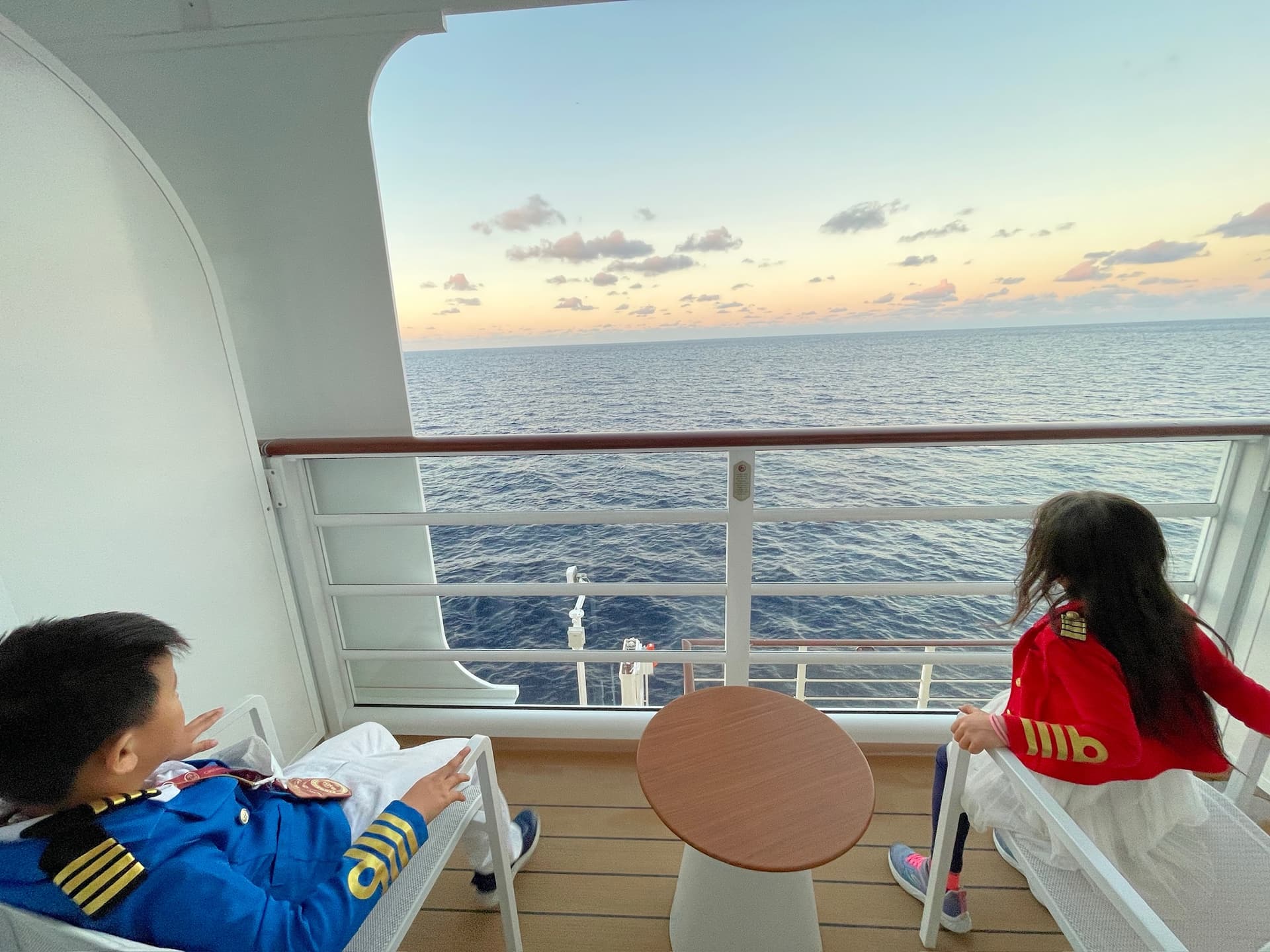 Then we started changing out of travel comfy outfits into our Nautical Best that I requested the family wear to board the ship, to have nice photos for embarkation for this most special Maiden Voyage.