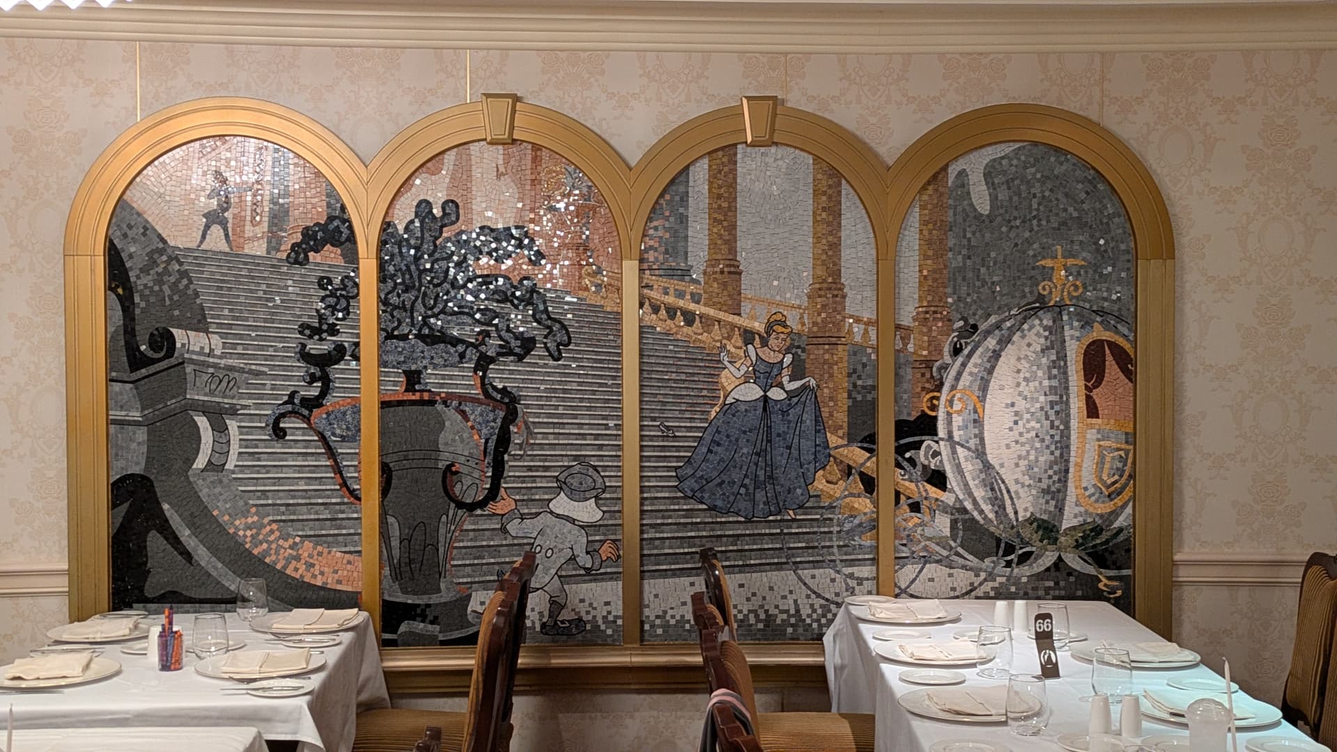 Early dinner was 5:45 in the Enchanted Garden. Again, I will cover food itself later, but the EG itself was simultaneously beautiful and oversold. I don’t know what I was expecting, but I guess it was more than what it was. The “transformation” that took place during the meal was very subtle and if you didn’t know to pay attention to it, you would miss it. Also, we had requested being at a table by ourselves, but instead we were seated at a table for 8…although we only ever had 6. The couple we sat across from was nice and in a similar life stage, which I guess Disney tries to do when they seat you with strangers, which was nice at least. (Although, the other couple sat at the other end of the table and so we didn’t really interact with them…they were considerably younger.)