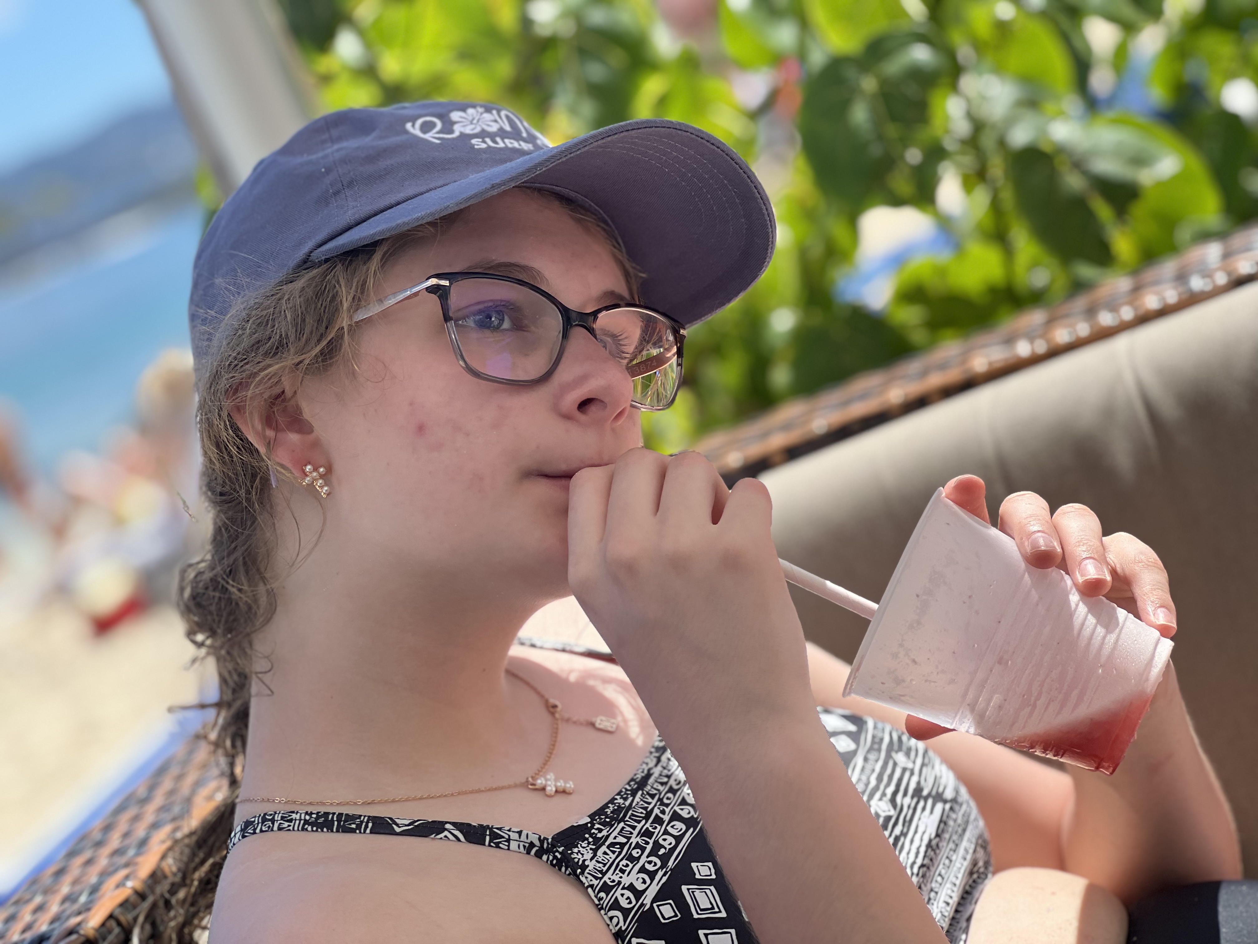 So several hours later we are multiple drinks in, kids have a sugar high from virgin daiquiris, and WE SAW SEA TURTLES!! Definitely the highlight for me! We’ve ordered room service for pre dinner dinner ( or dinner #1 as I call it) and we are going to relax on the balcony for a few hours. Tomorrow is a sea day.