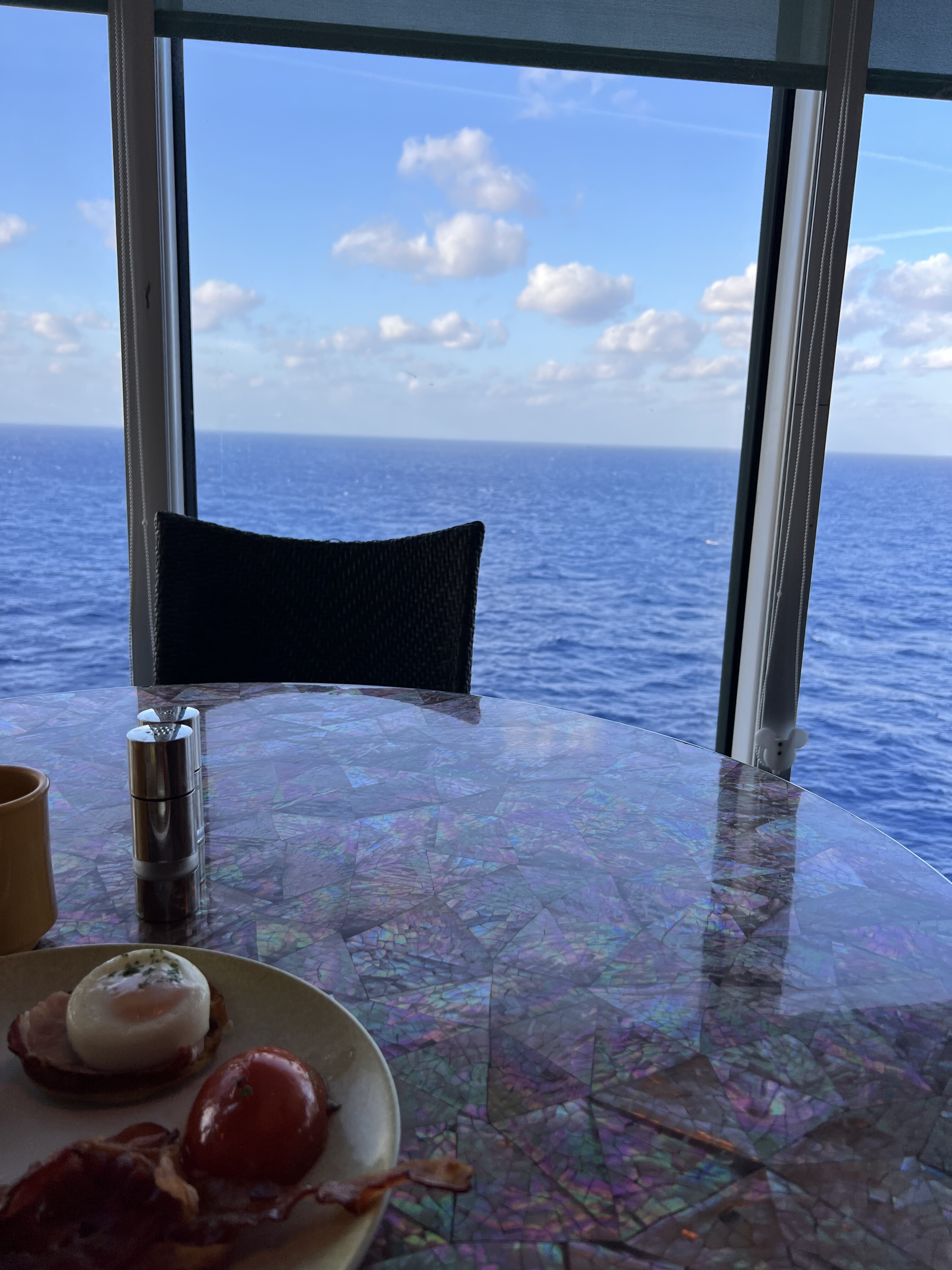 This morning time went back an hour so I’m about the only person on the ship awake. It’s quiet and so peaceful. There’s one other lady reading a book but otherwise just the crew. They are painting and cleaning like crazy. I’ve never seen a ship so well maintained. Here are some “everyone is asleep” cruise pictures.