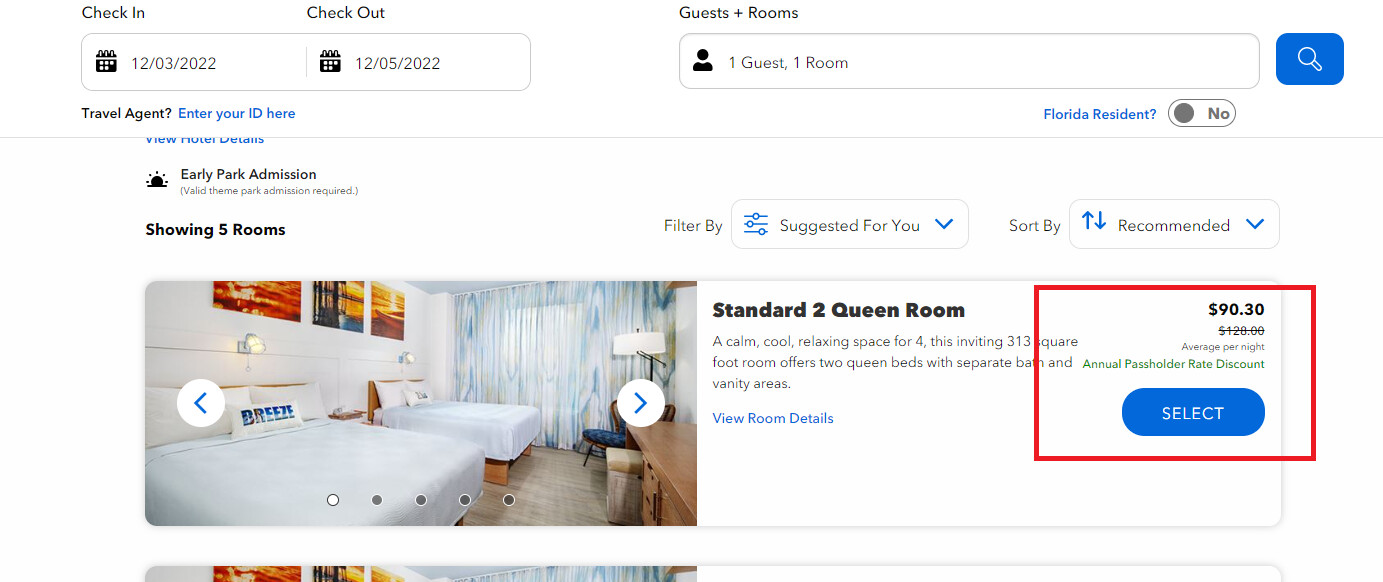 I choose Cabana Bay! It says I got the Annual Passholder Rate