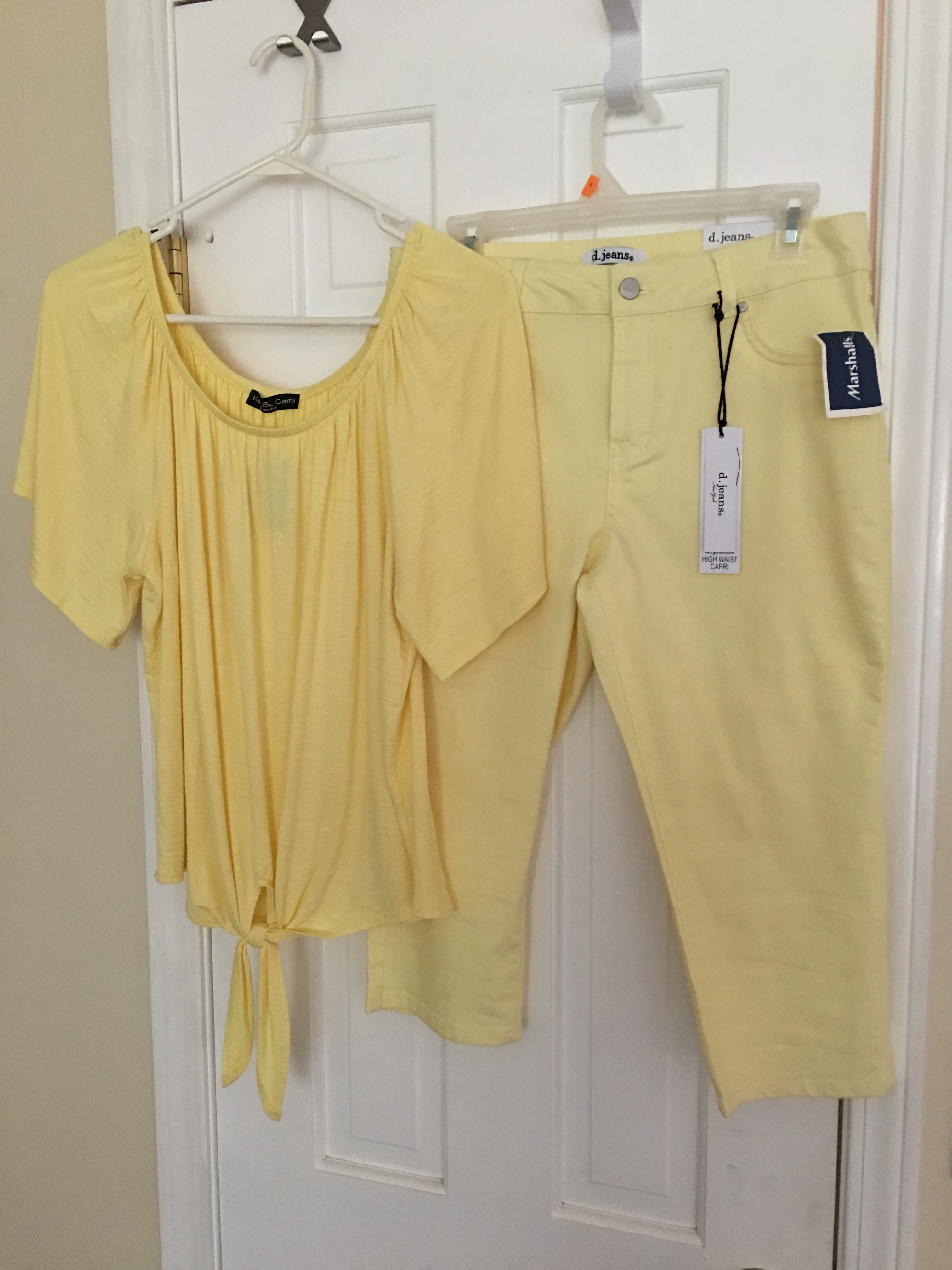 Me Rabbit. These with a long white tank to peek out under shirt. The shirt is a little bit too big on me. I am keeping my eyes open for a different one. I hope to wear the same yellow shoes for both outfits.