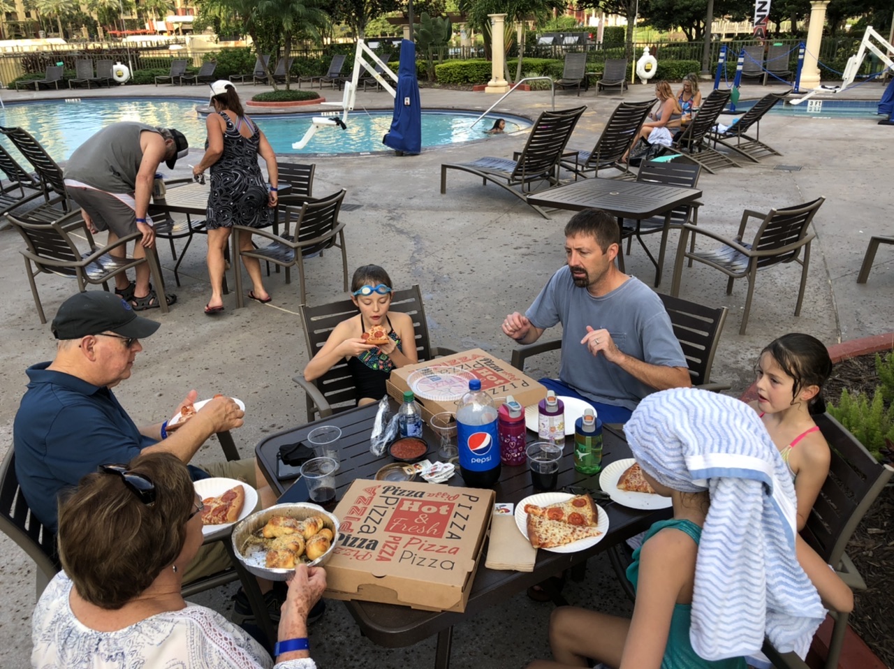 Hot dogs for lunch, dinner in the crockpot, and some other friends who live about an hour away came to visit. We’re visiting by the pool while the kids swim. Found another pool we didn’t visit yesterday…I think that makes six.