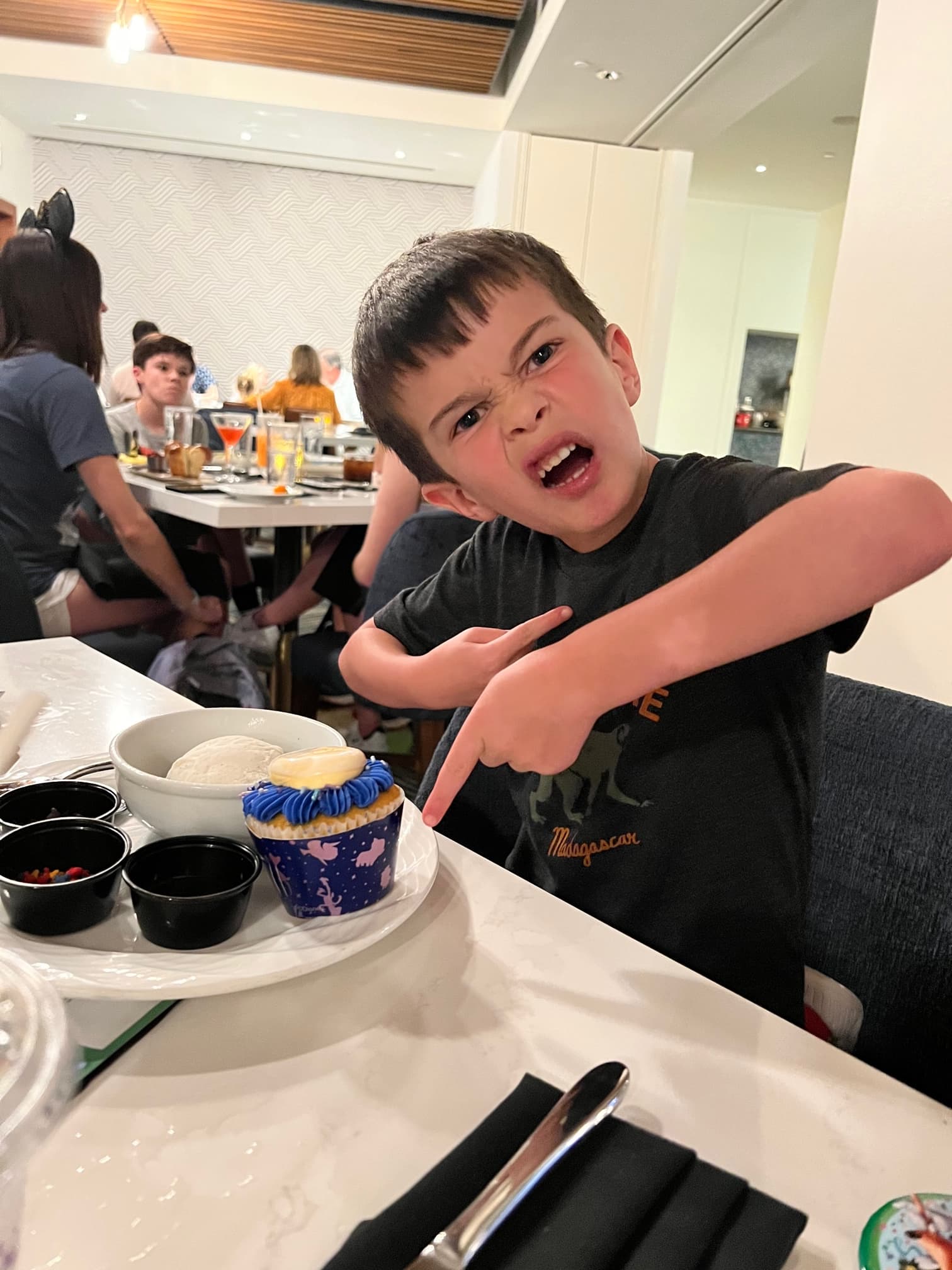 Regardless, dinner here was DELICOUS, and my only regret was that I couldn’t order more sides and sauces because they all sounded so good – I had the filet with mushroom sauce and mashed potatoes and it was excellent, my husband had some kind of meat with chimichurri and broccolini that was also amazing. I also got the raspberry gin sour which was, I think, the best drink I had on the whole trip and way up there with best drinks in my whole life – yum. We wrapped up with an absurdly tall chocolate cake, crème brulee, and the sundaes for the kids. Plus when the hostess had seated us she’d noticed W’s Happy Birthday button and so his dessert also came with a cupcake, which was so sweet.