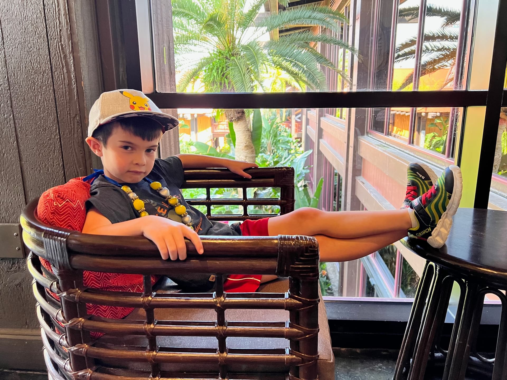 We lazed around the room watching Bluey for a while, which is honestly my personal favourite way to start any day regardless of where we are, and then hit Captain Cook’s for some breakfast on the patio, where I discovered that I have the only humans in the world who don’t like Mickey waffles, so B ate the better part of my breakfast burrito and W ate chocolate milk, his personal breakfast of champions. Then we rope dropped the pool.
