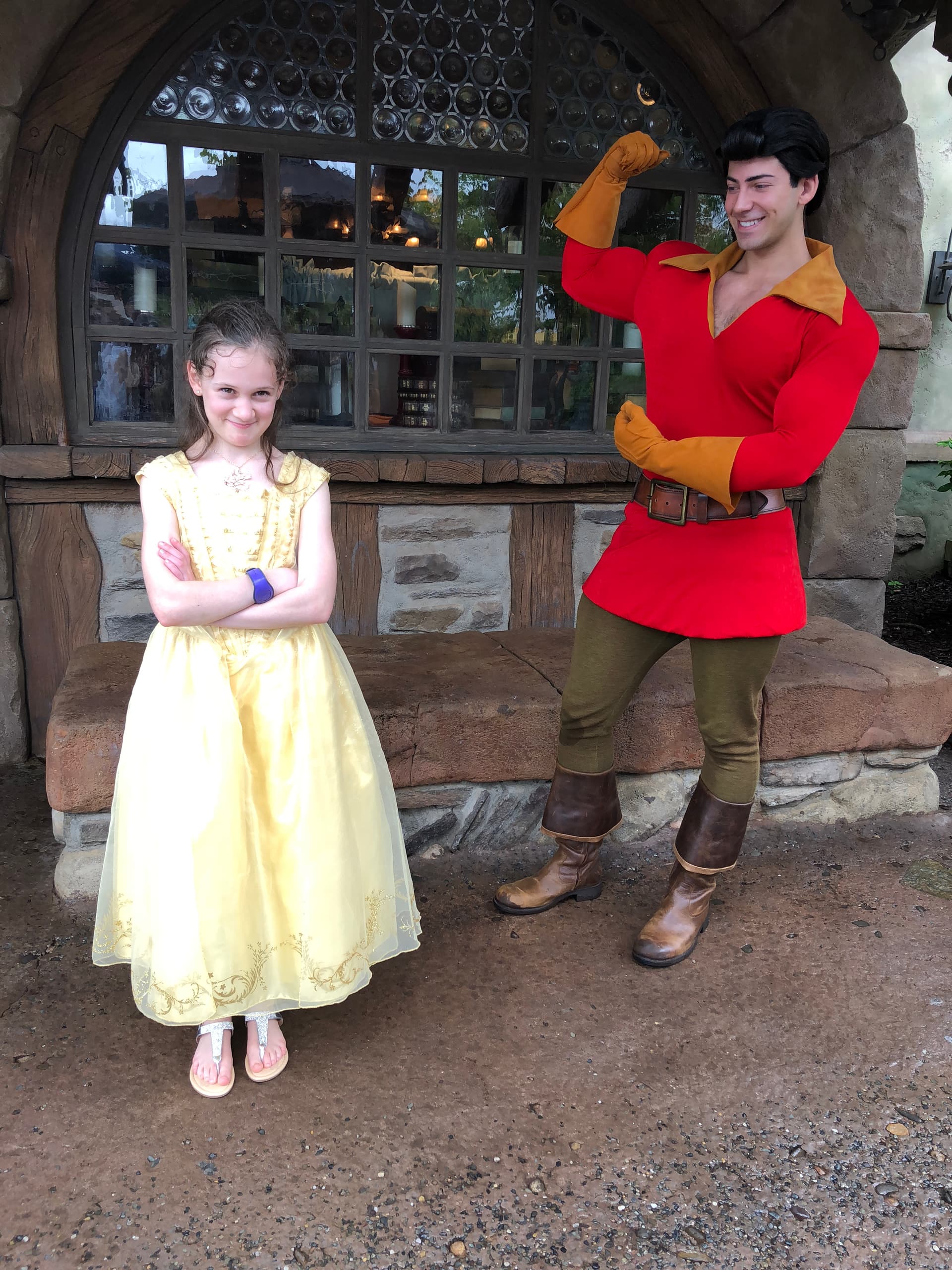 This is my daughter (same visit) dressed as Belle. Gaston was perfect. She was so shy. The look on her face. The CM photographer took an amazing closeup of this.