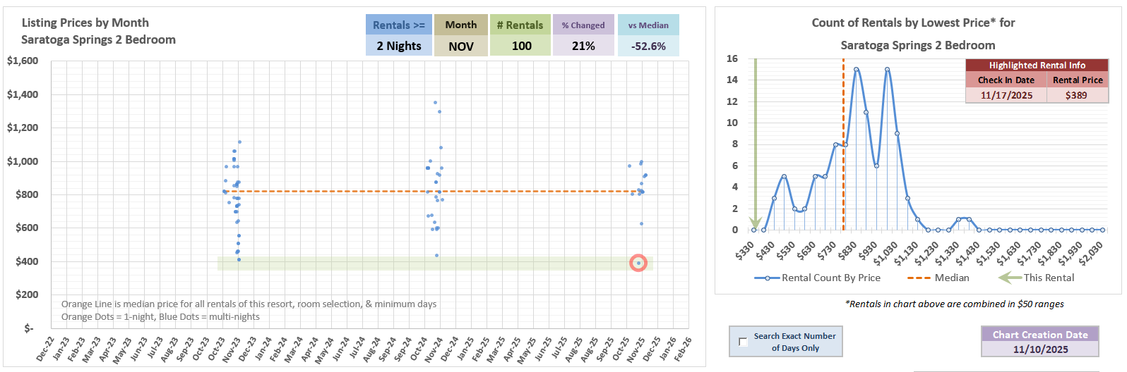 6-night SSR 2 Bedroom 11/17 for $389/night or 47% under median