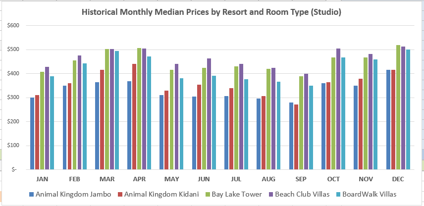 I am curious how this aligns with the point charts. There would be an average cost per room per resort for each month, and one could calculate the deviation from median for each month comparing points to rentals. If Disney was allotting points properly across the year, you would think the highest $ times would also be the highest points. But something tells me that is not the case, for example - in early December.