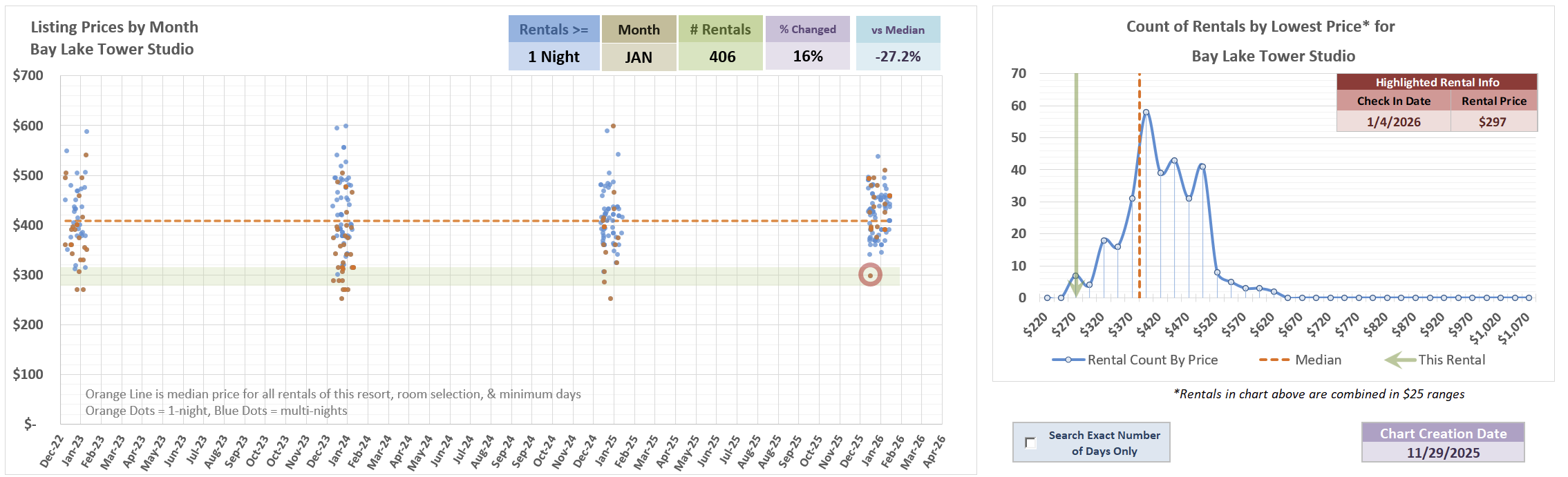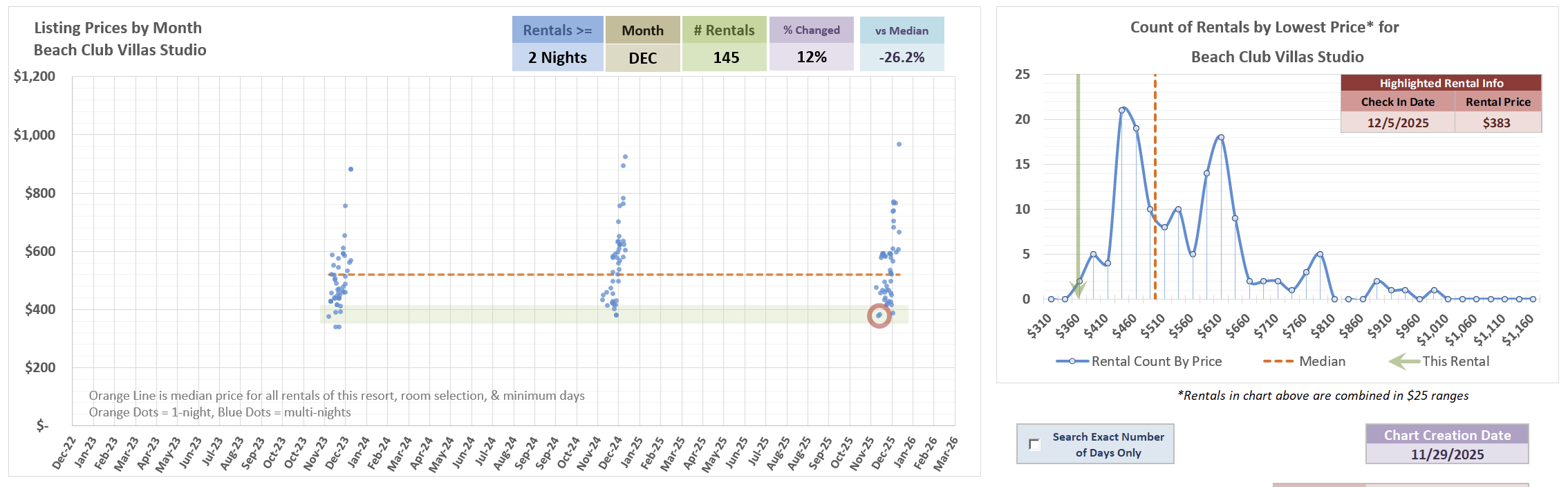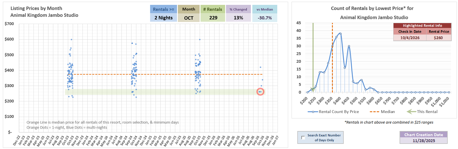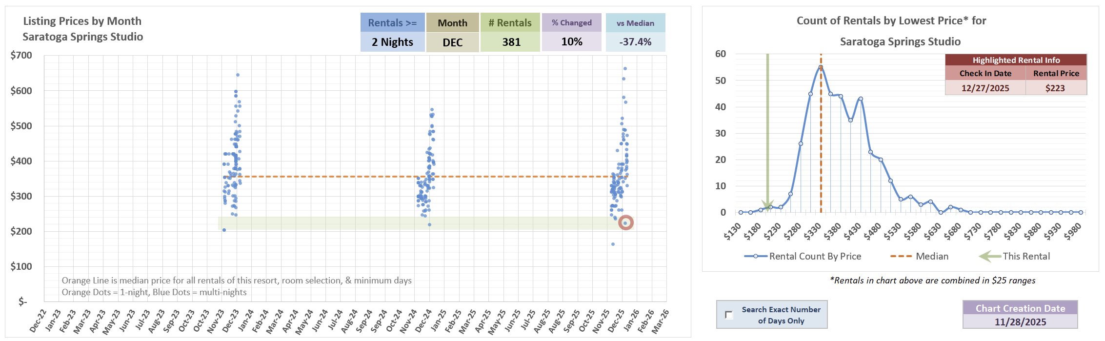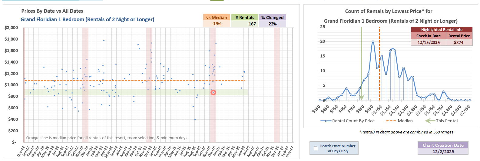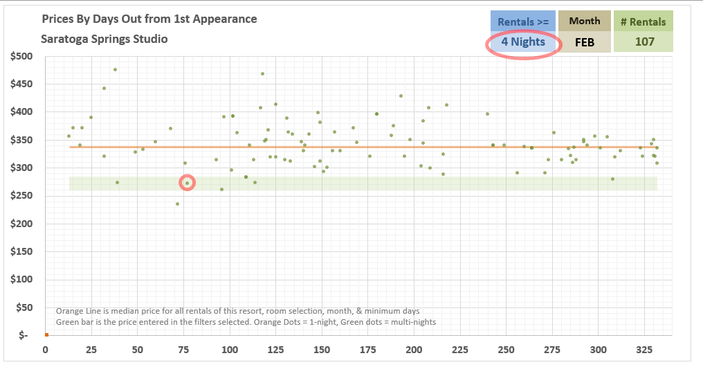 But, this is a good example that there’s more to things than one simple metric - You can see below, in February, there are just not that many listings lower than this price even when looking at all past listings 2-nights or longer.