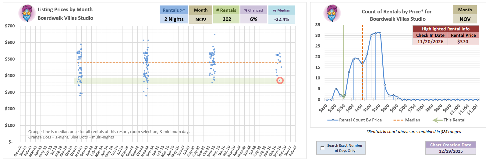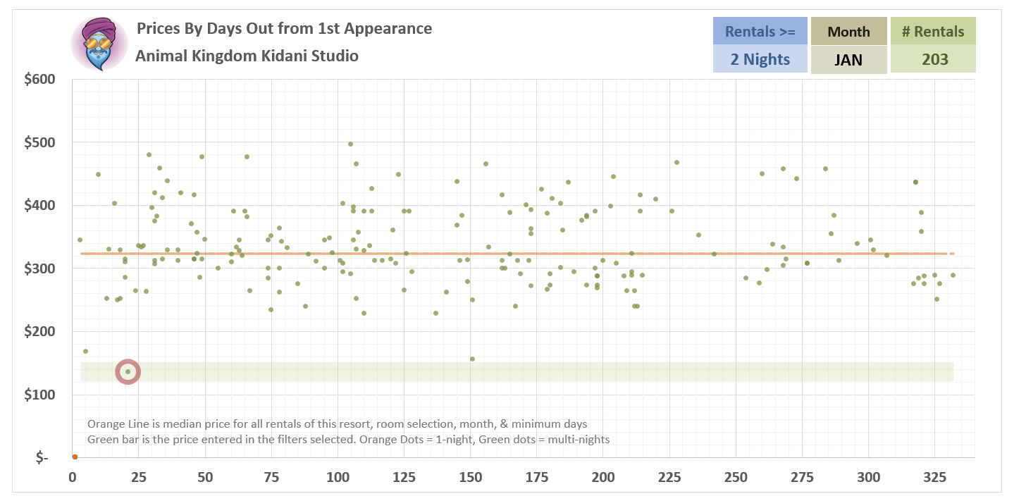 But, when looking at the ALL dates version of that chart, you can see plenty of listings well below this price - AND that $399 in that context is actually right AT median.