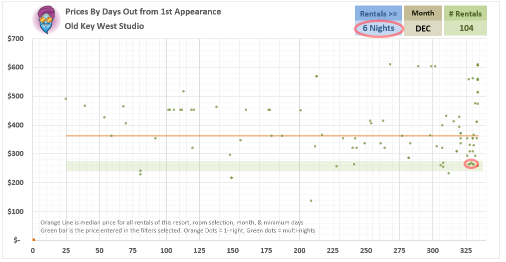 You can also see that while there may be lower priced listings appear in the next few weeks, it won’t be many - and certainly VERY unlikely we will see another longer one like this 5-nighter except for a rando.