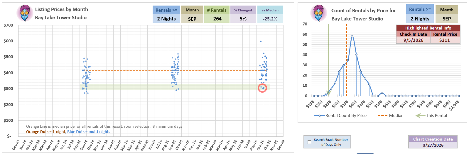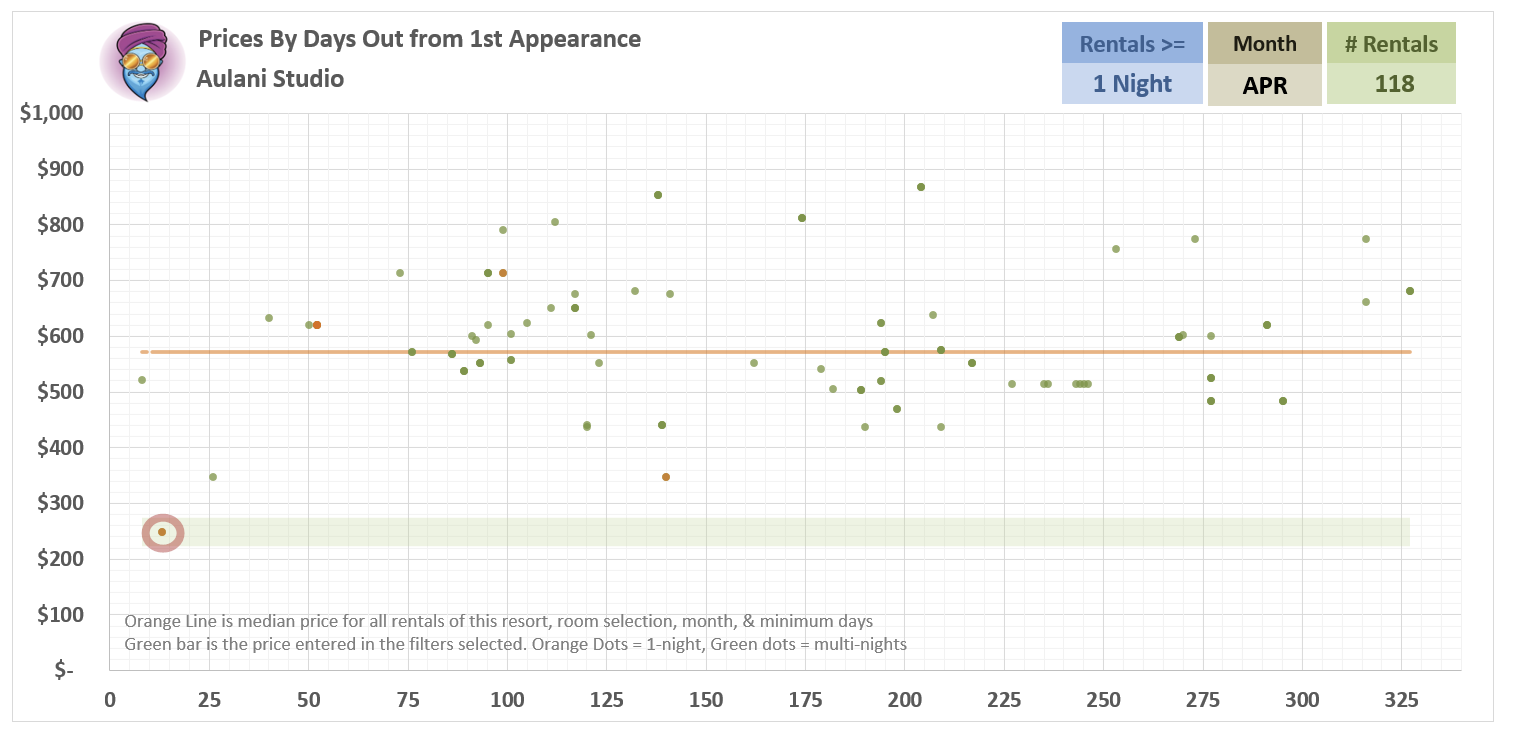 Only 3 of the listings at this price or lower in this chart that appeared <71 days out (where we are now) were 4-nights or longer. Rare, baby, rare from this point forward.