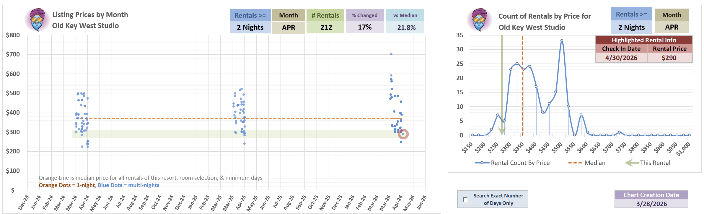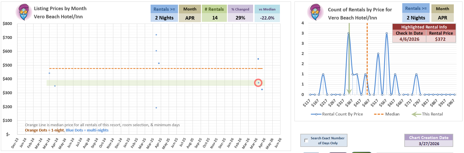This is a very low volume room in dedicated APRIL data, so take the median with a grain of salt - but this is at the low end of the spectrum for that month. However - PLENTY of MUCH lower prices other times of the year.
