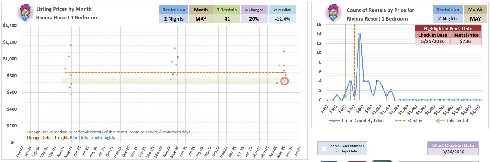 You can see looking at the All Date charts there are some other times in the year where you can catch lower Riv 1BR deals - but it is rarer in May. (Last year was only that singe krazy $400 listing below this price.)