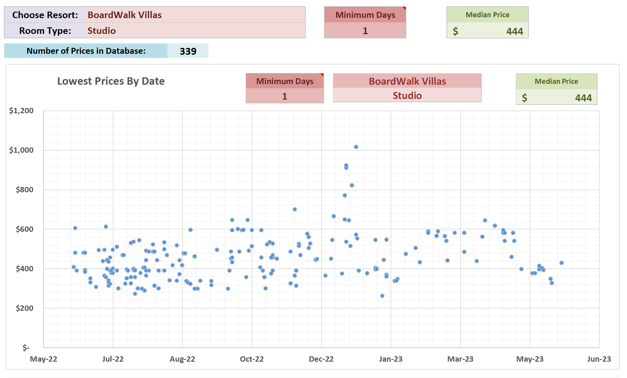 I normalize them as much as I can and I also track them using simplified room types (Studio, 1BR, 2BR, etc) - but when you summarize the room pricing doing that can you really compare a Value Studio to a BWV Boardwalk view or AK Savannah view? Methinks not, but I still do summarize them since there’s at least a sketch of pricing by room type and resort.