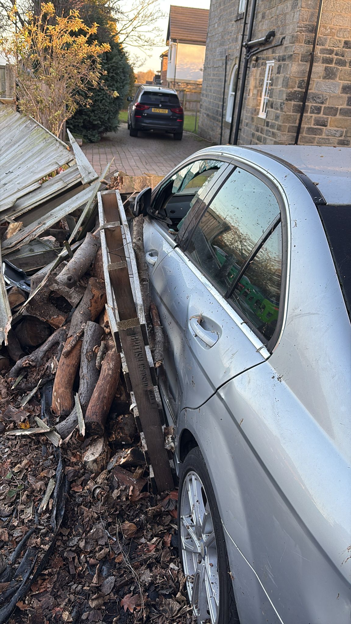 Some idiot driver crashed their car into the fence and then into our car. So now we have that to deal with.