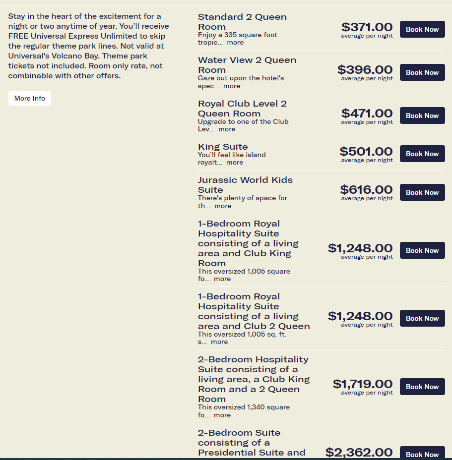 Notice the Jurassic Park Kids Suite. But I say I am 4 adults: